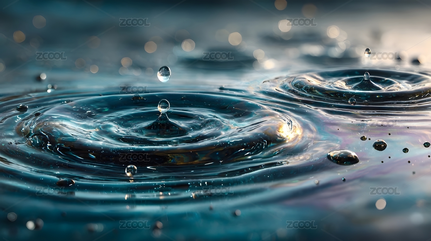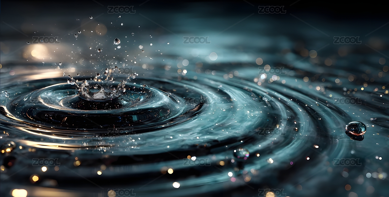 水滴入水激起涟漪场景 波光粼粼视觉效果