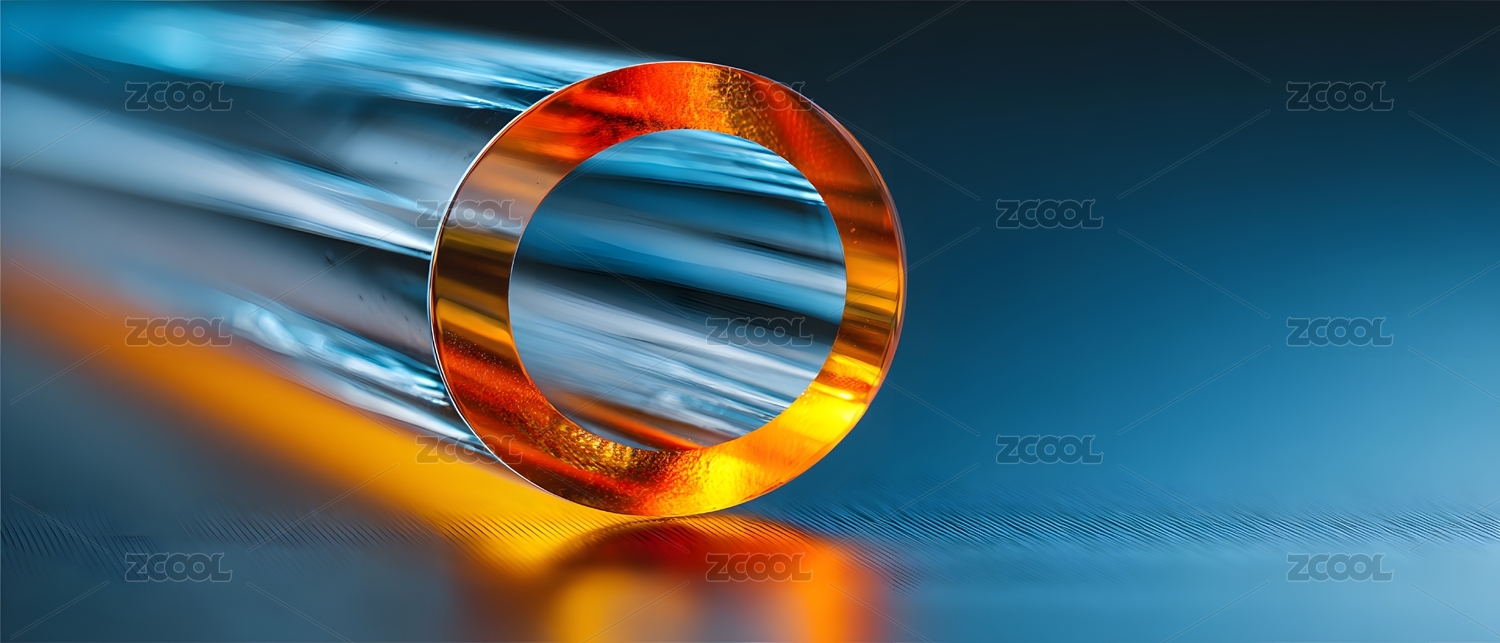 玻璃管折射光线抽象艺术,橙蓝光影唯美氛围