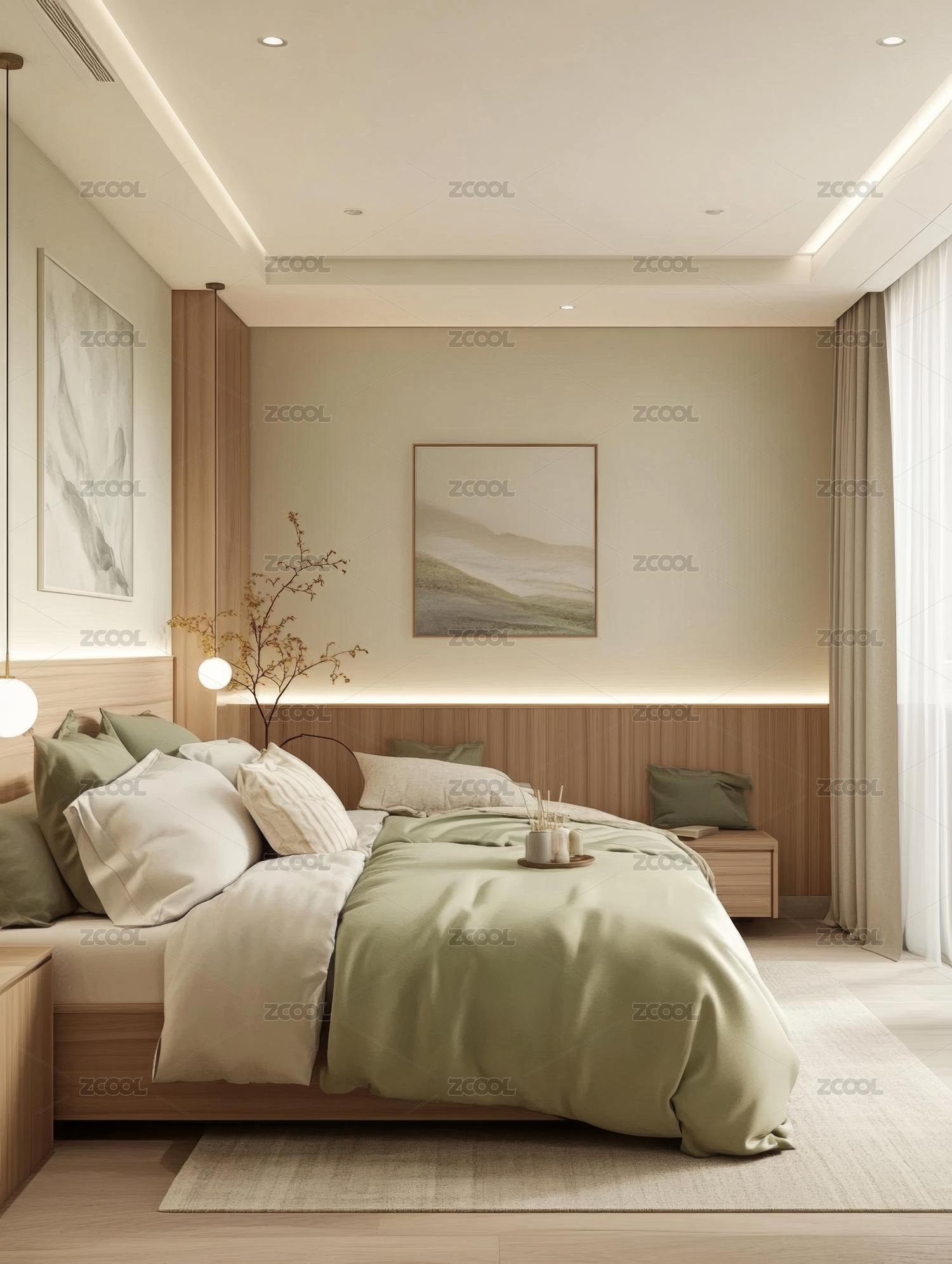 卧室,窗帘,吊灯,窗户,装饰画,家具,室内,简约,现代,布置