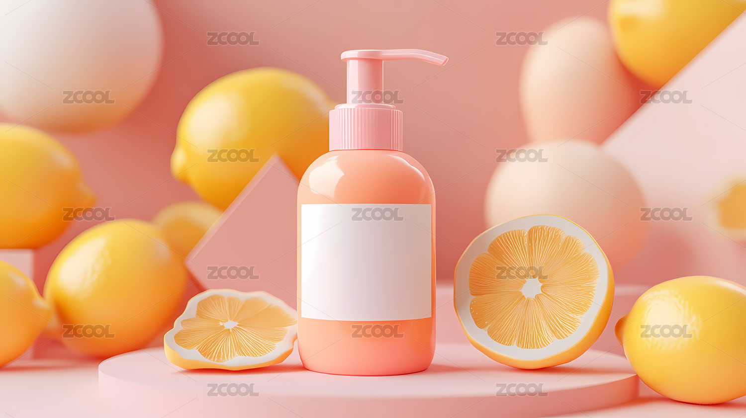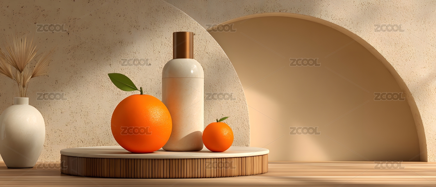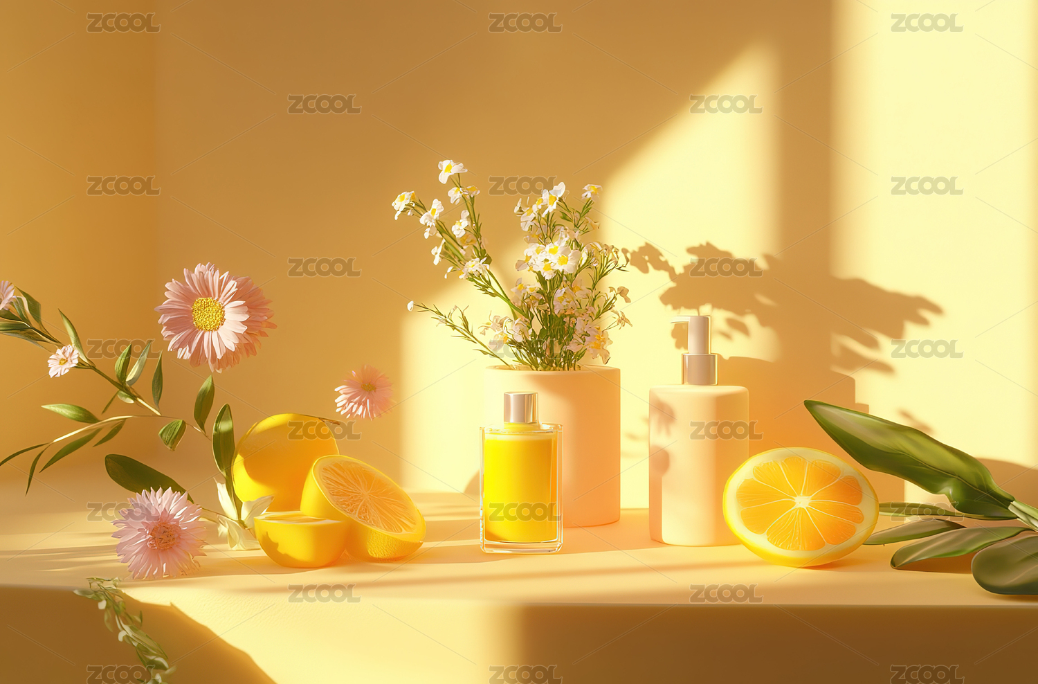 柠檬柑橘与护肤品摆拍 简约清新场景