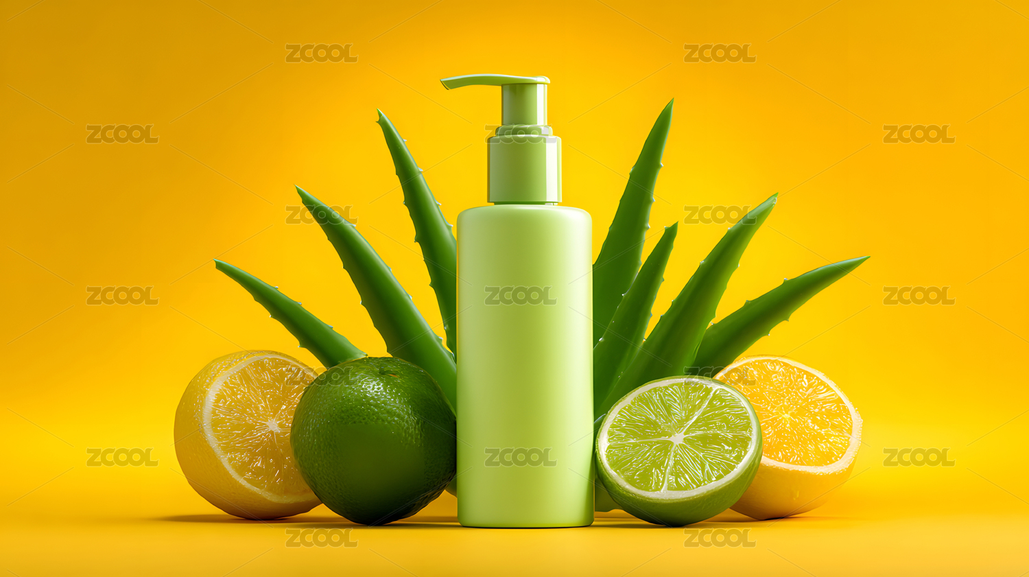 哑光护肤爽肤水瓶的柑橘芦荟清新背景