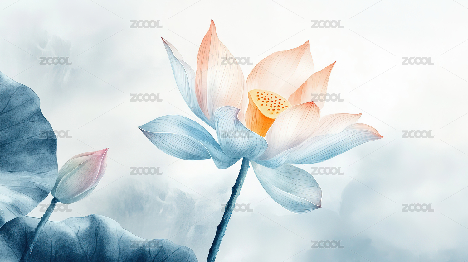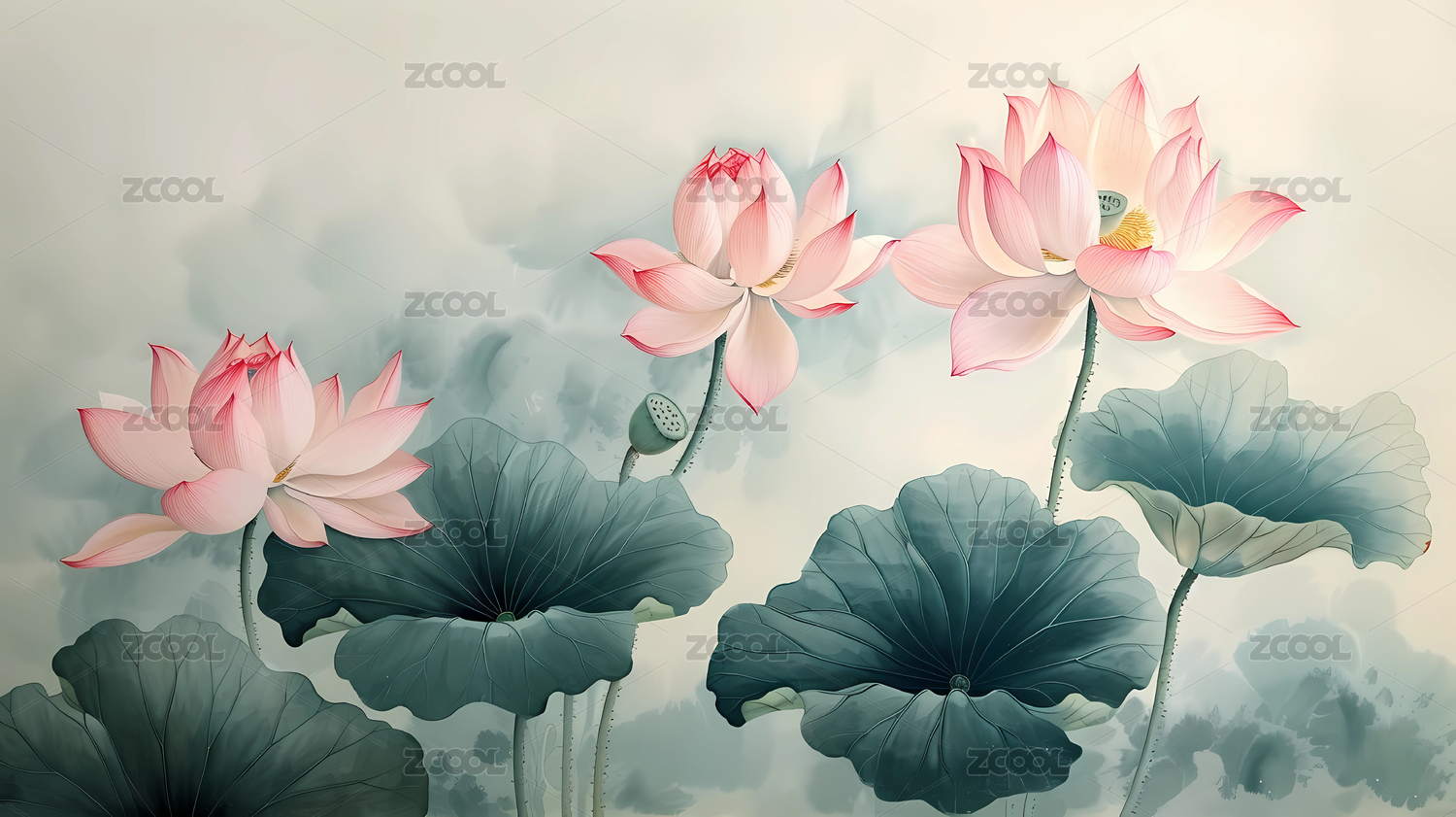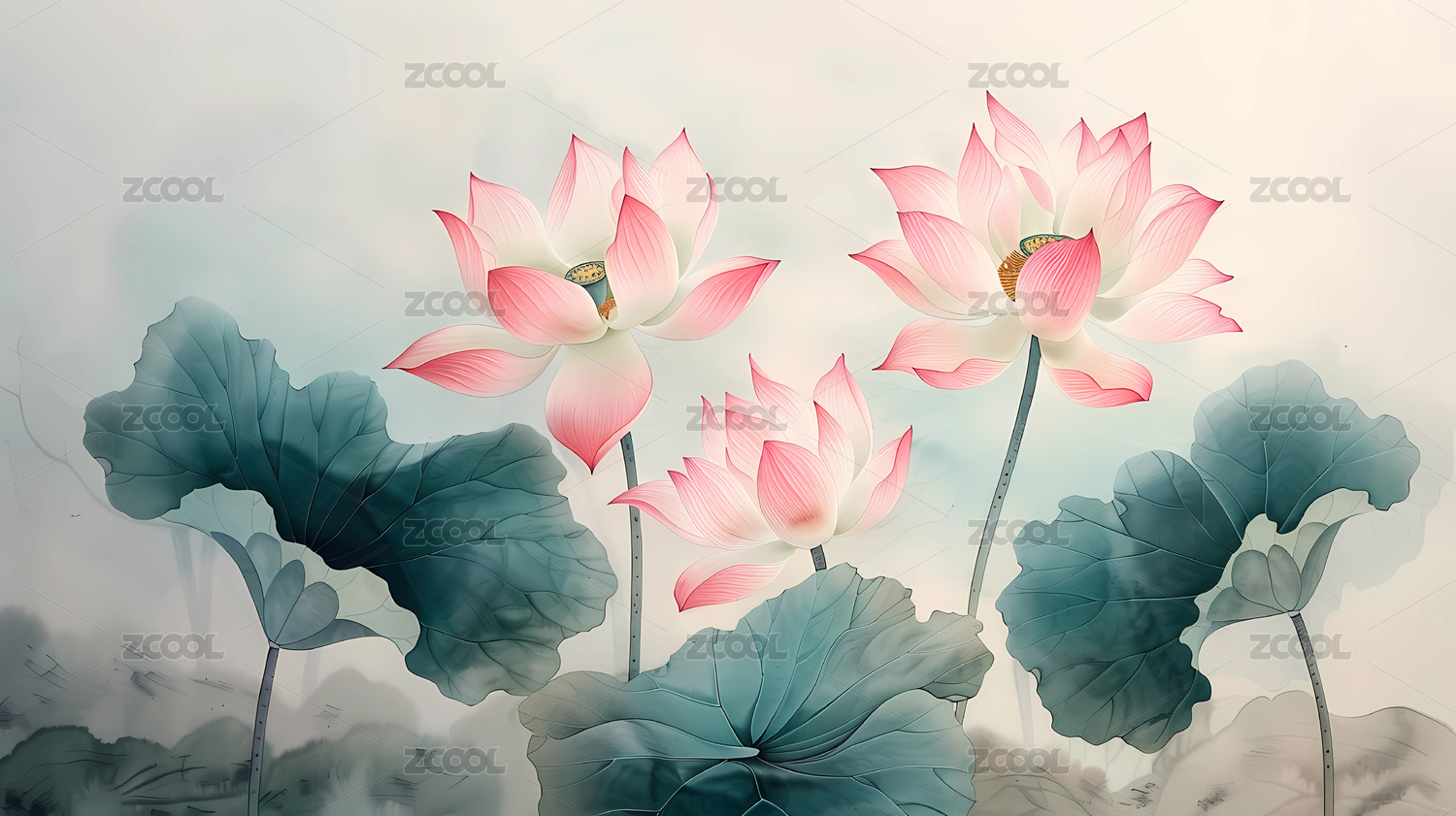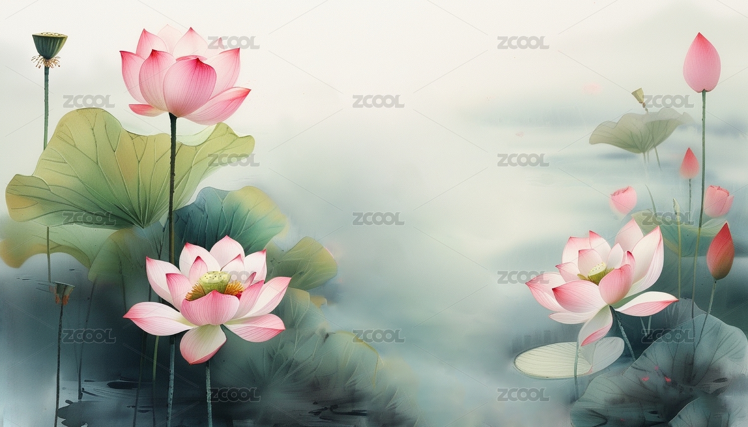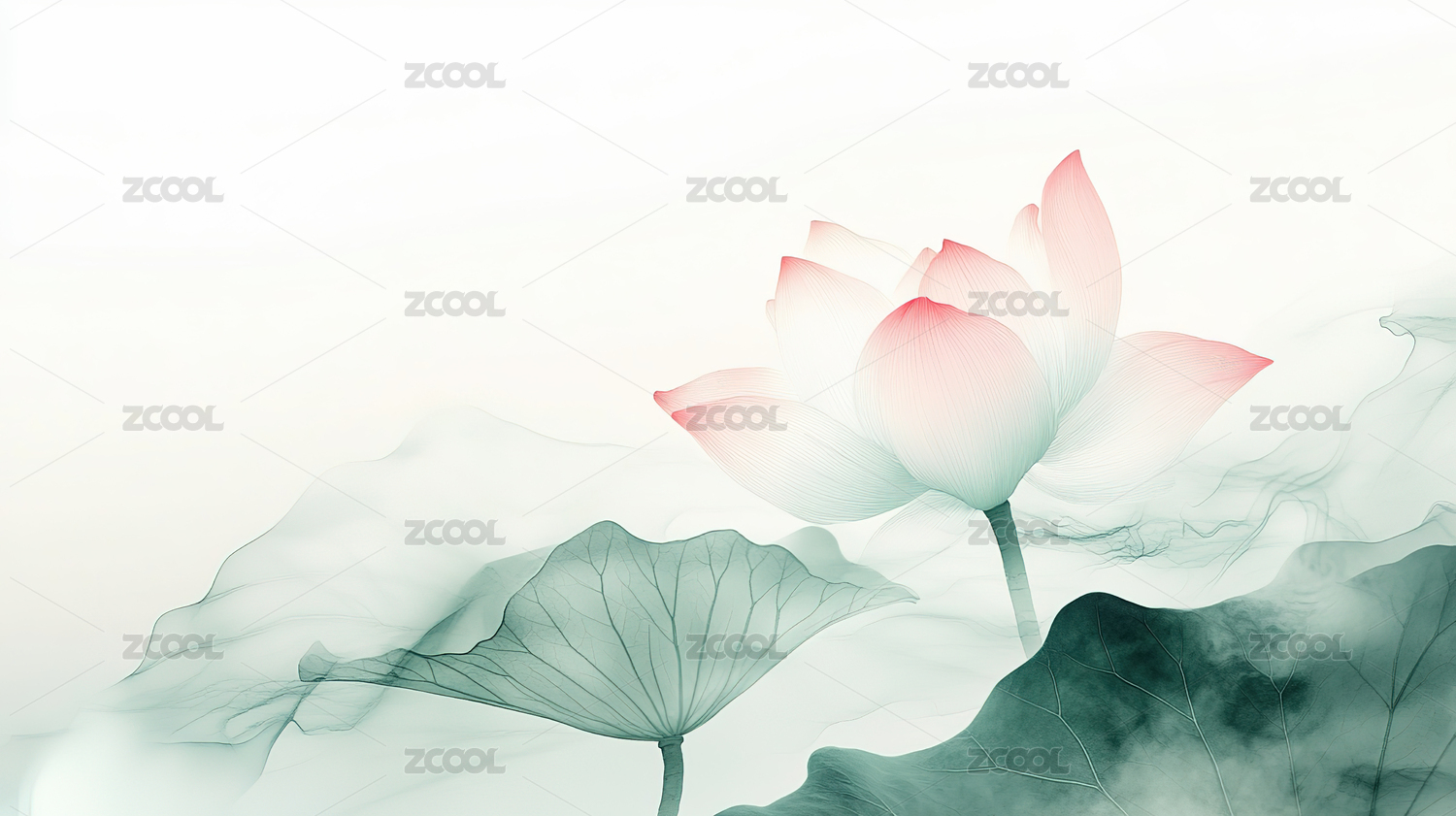 唯美淡雅的荷花与荷叶国风背景