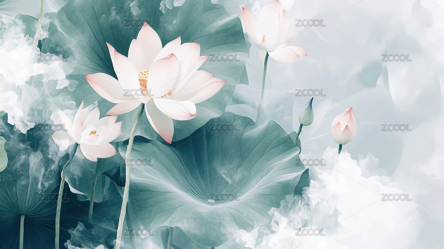 中国风荷花艺术背景