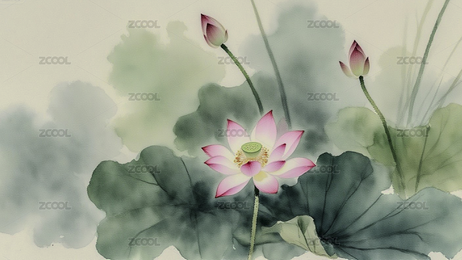 清雅莲华水墨荷韵