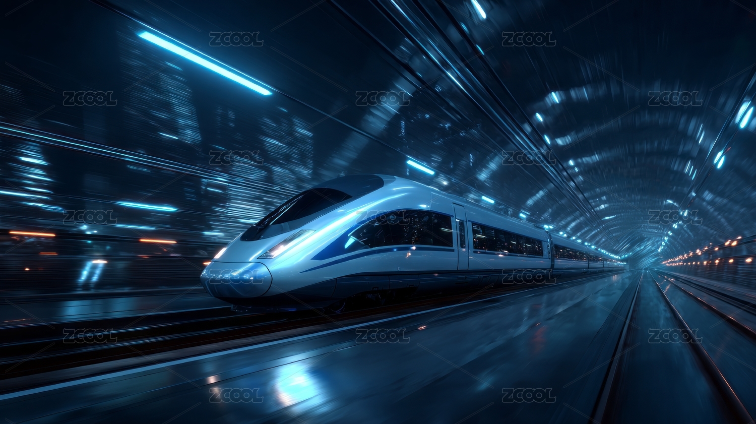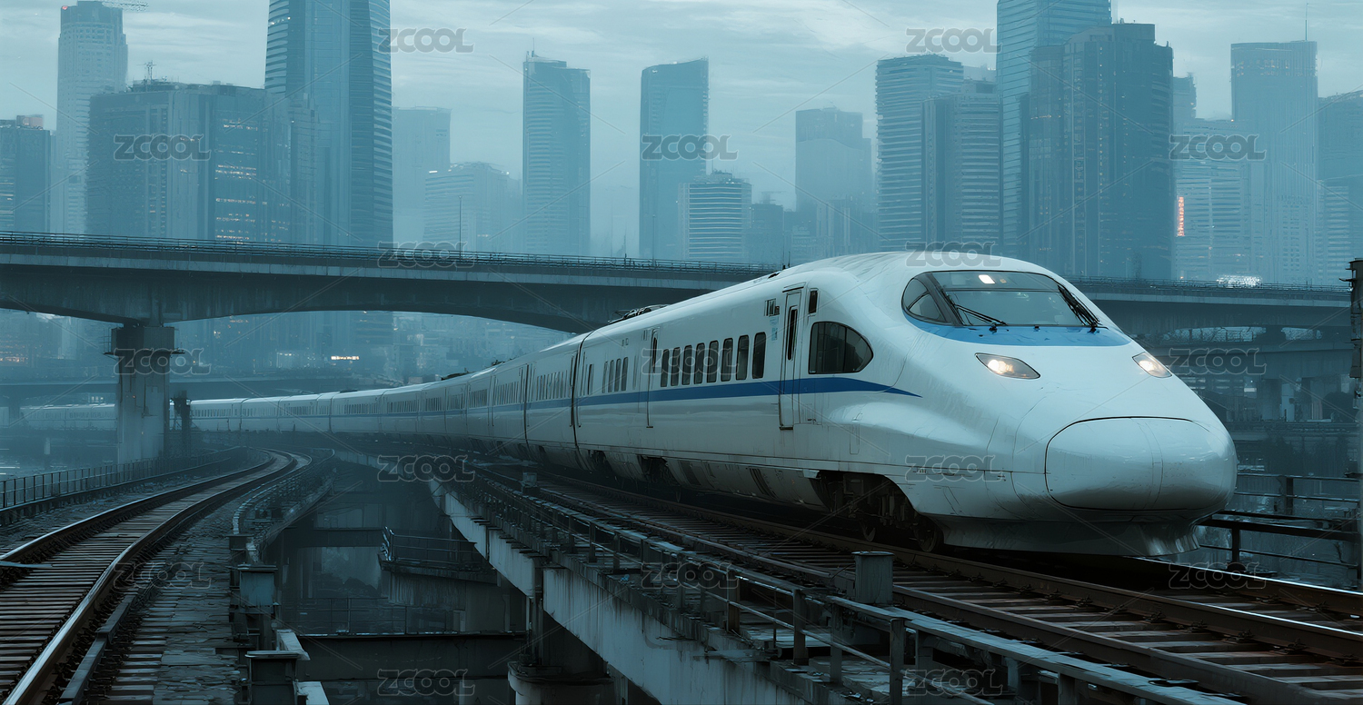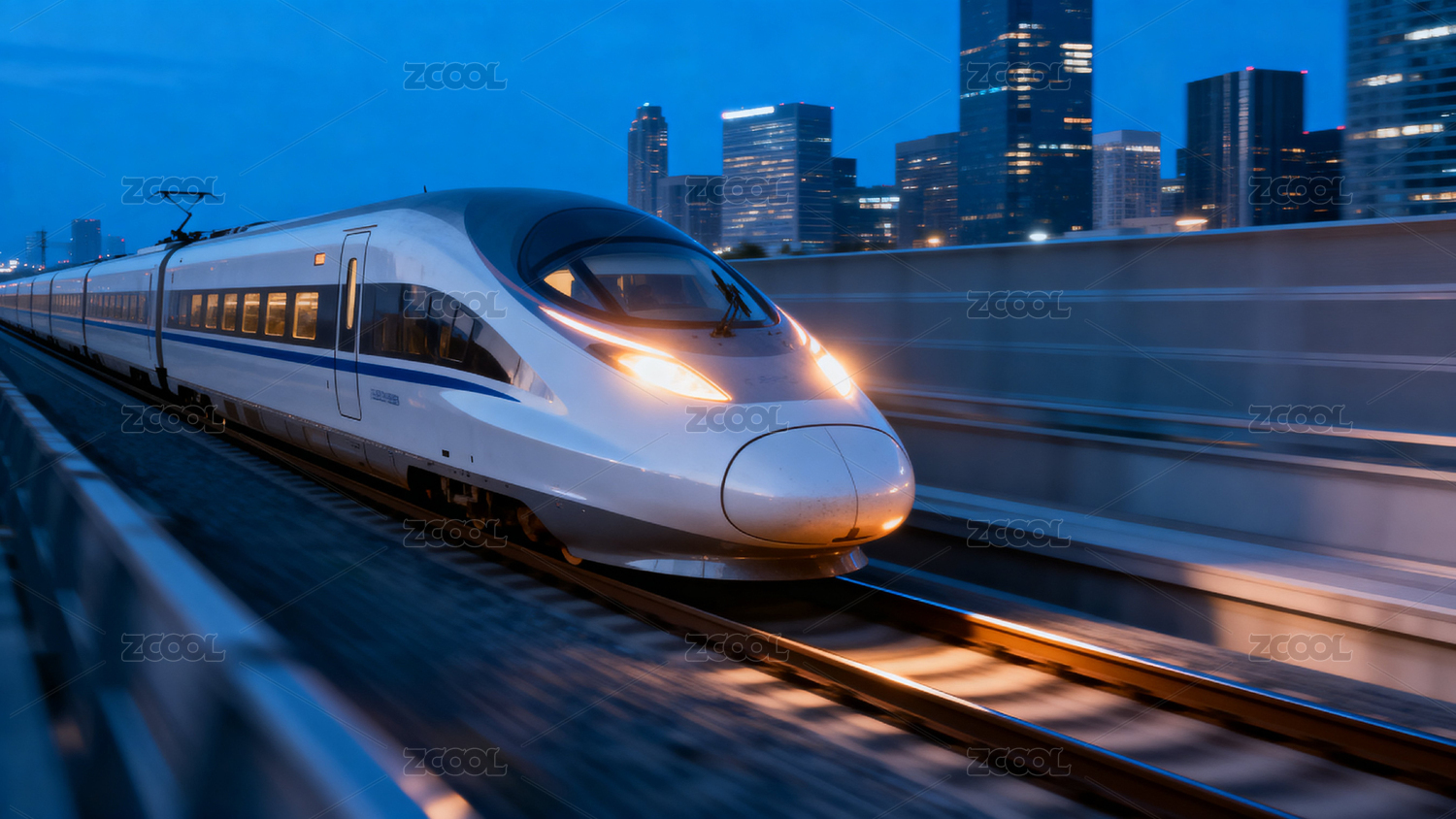 暮色中高铁穿梭都市呈现现代交通的装饰视觉