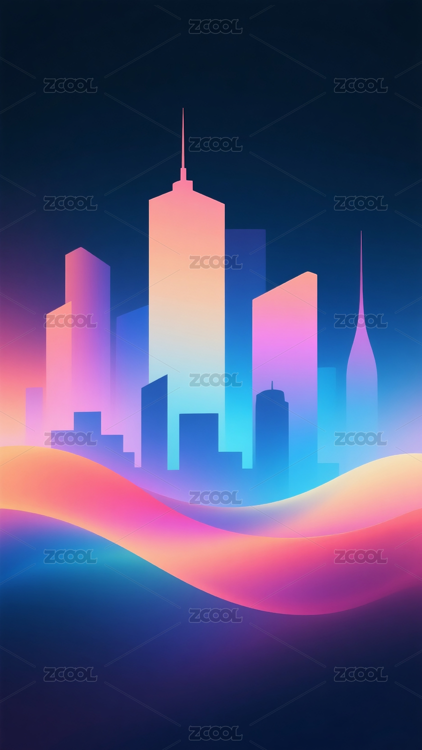 背景,壁纸,炫彩,渐变,弥散,城市,建筑,简约,剪影,艺术