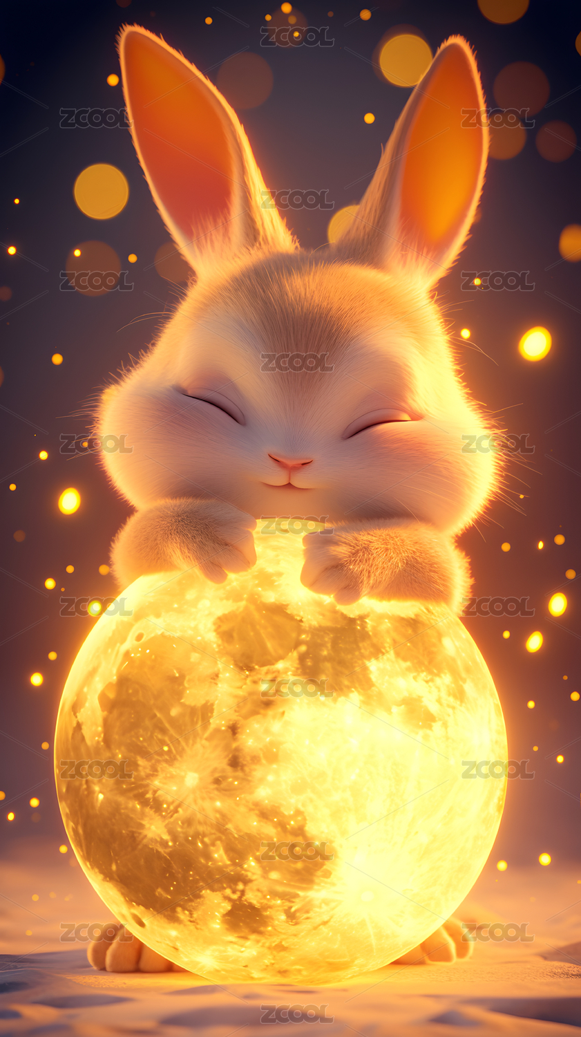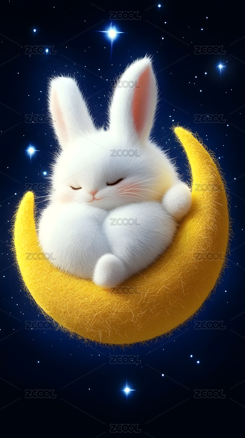 兔子,月亮,卡通,可爱,睡眠,梦幻,星空,治愈,萌宠,夜晚