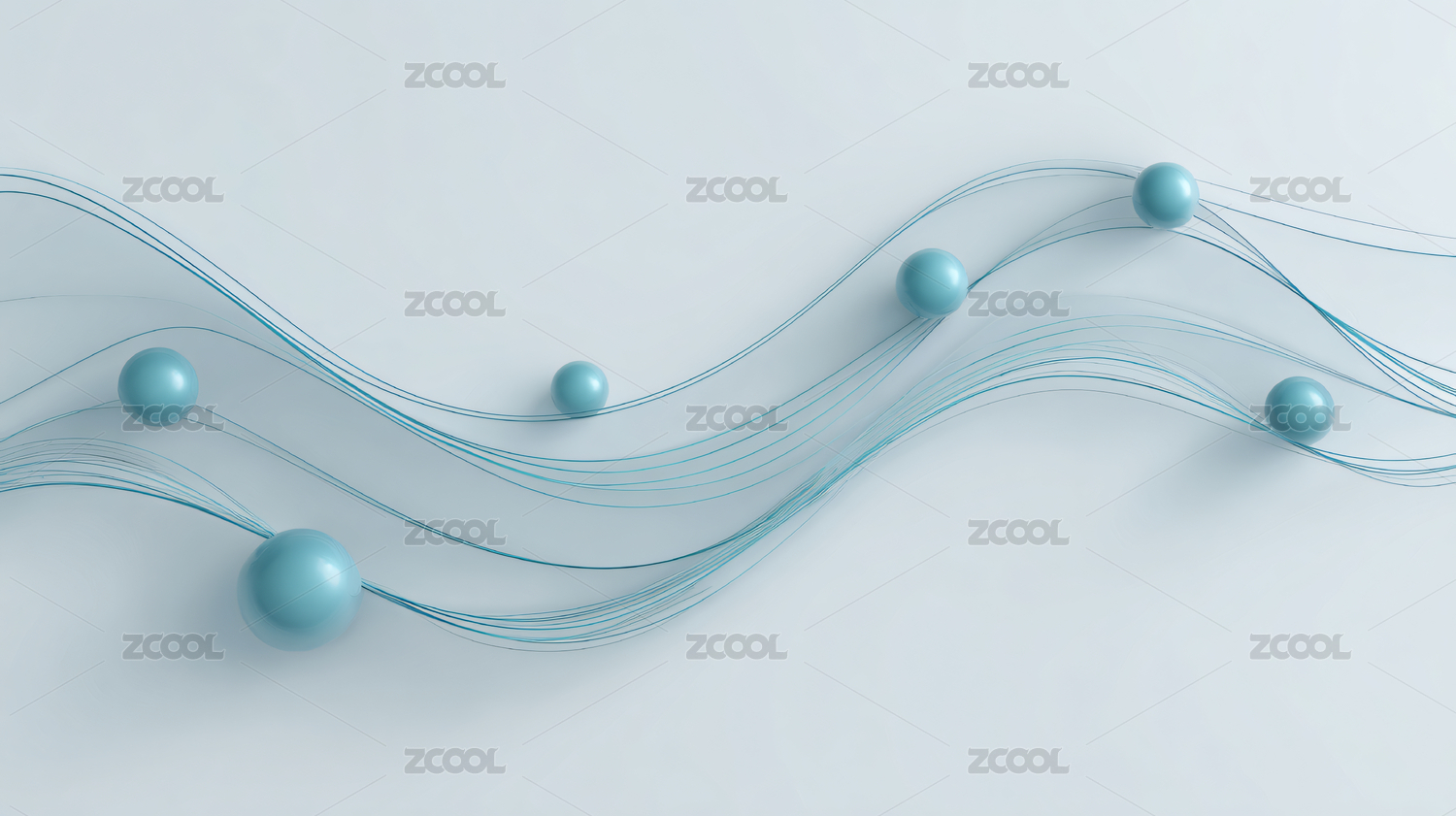 蓝绿波浪与球体艺术图