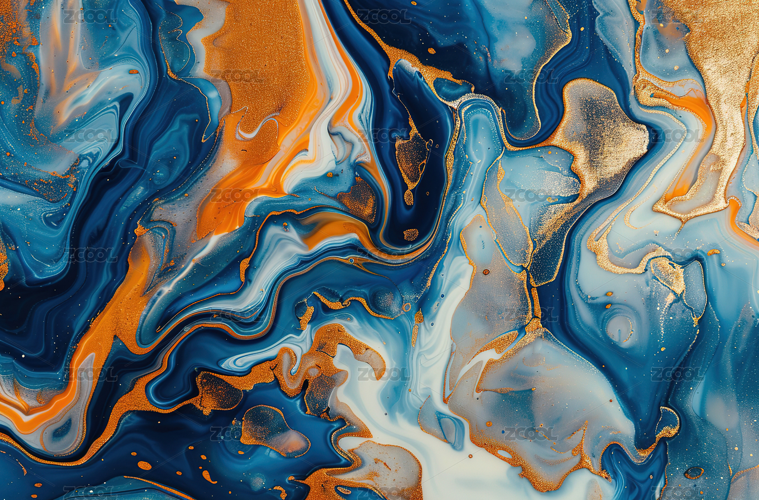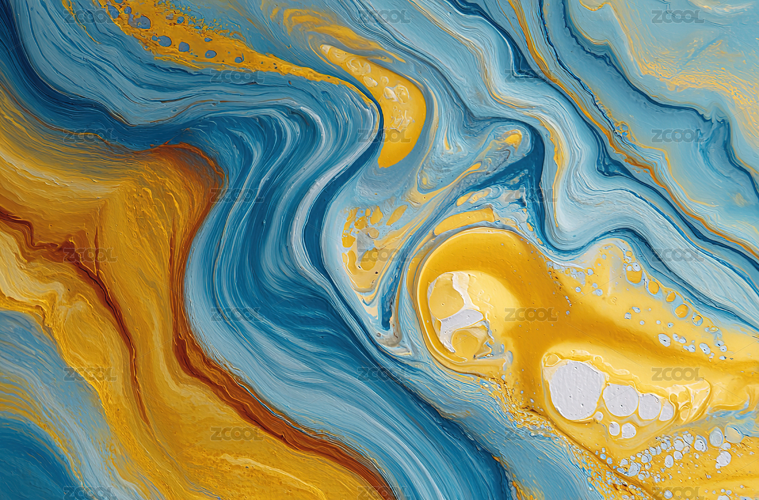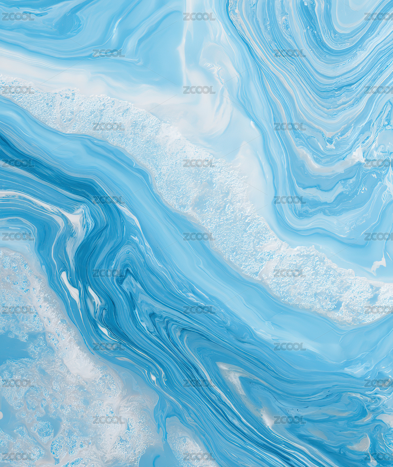 蓝青白混合颜料流体艺术,抽象的彩色背景墙纸纹理。