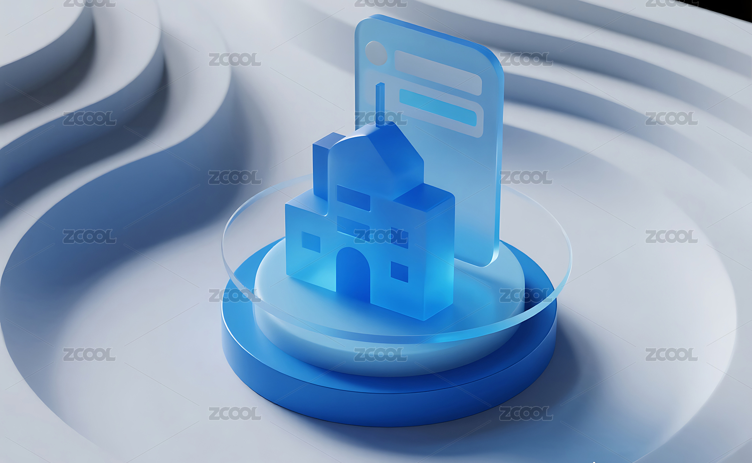 蓝色,背景,建筑,流动,白色,3D,模型,简约,玻璃,半透明