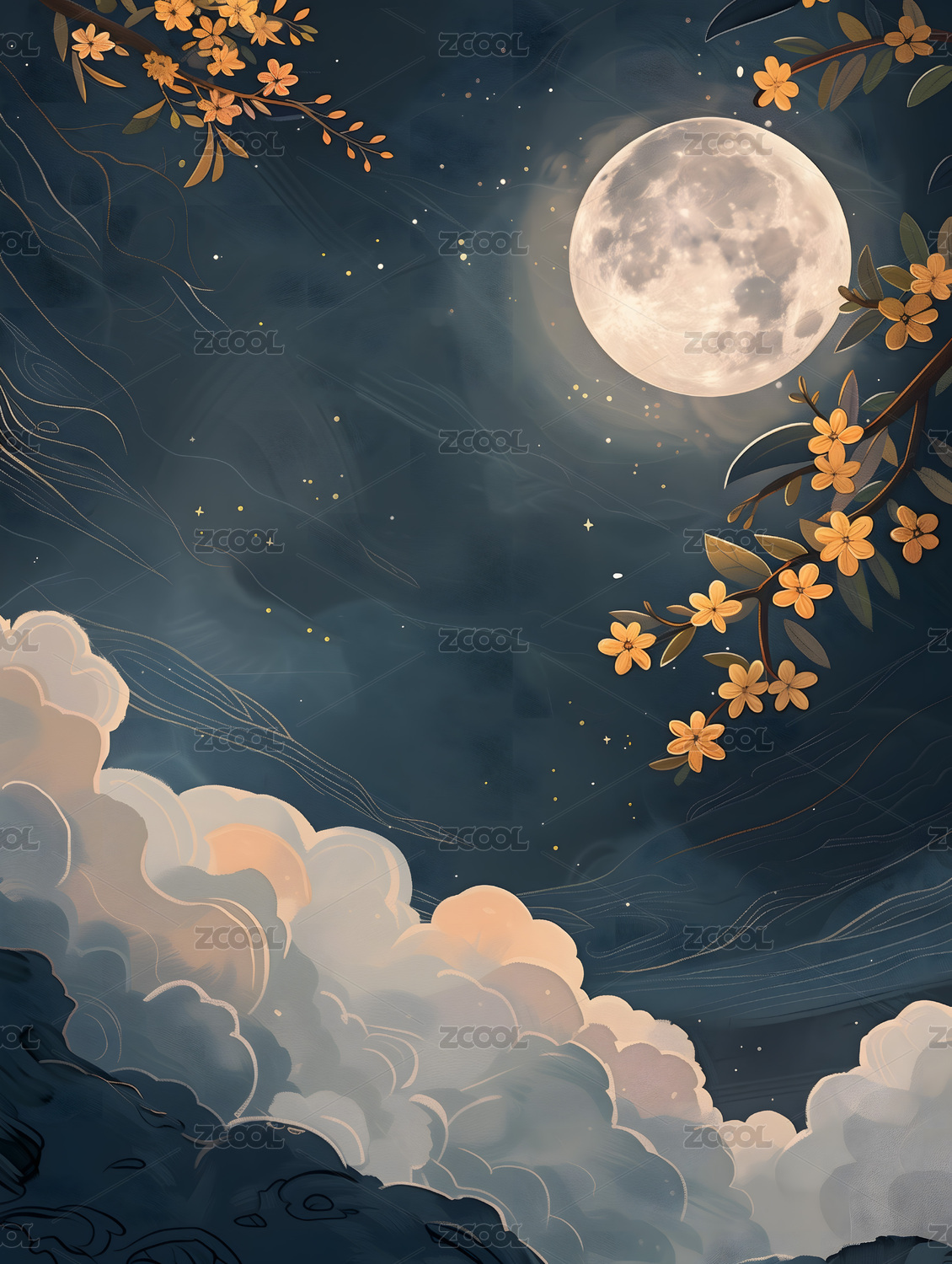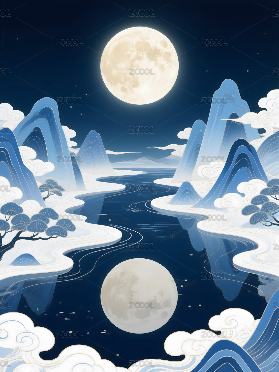 中秋节山水满月插画