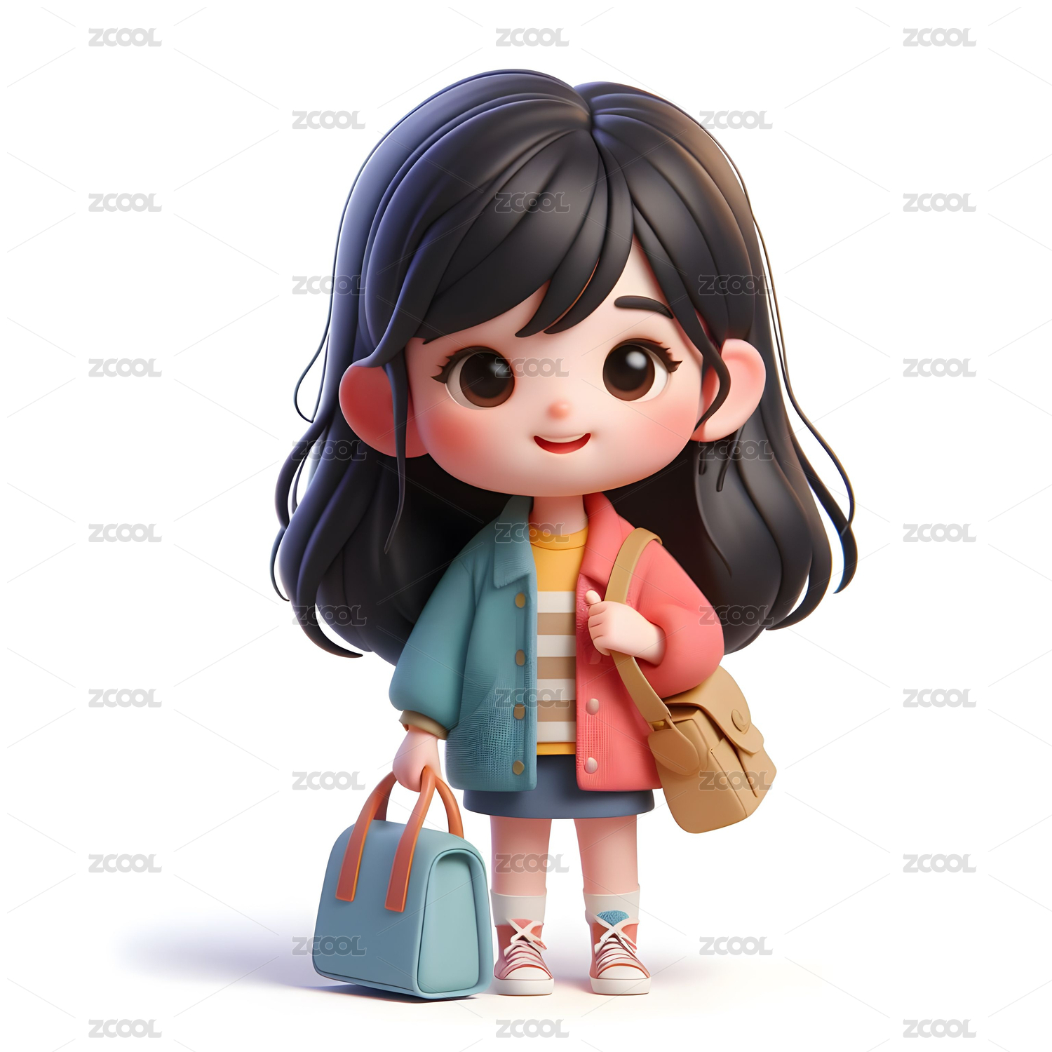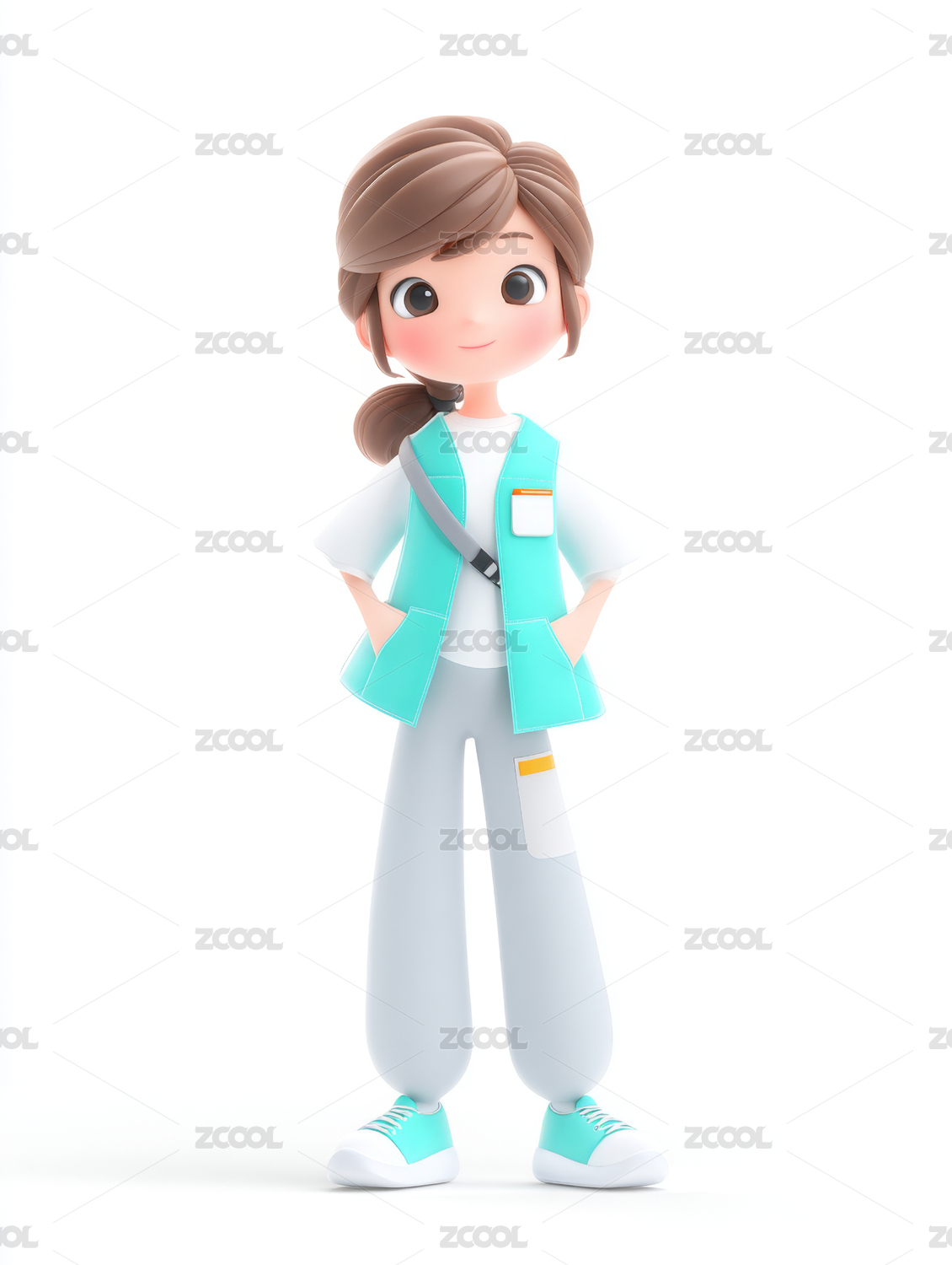 3D渲染的可爱的小女孩