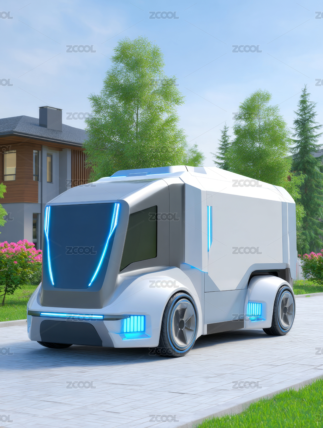 未来,电动,配送车,街道,住宅区,科技,环保,设计,智能