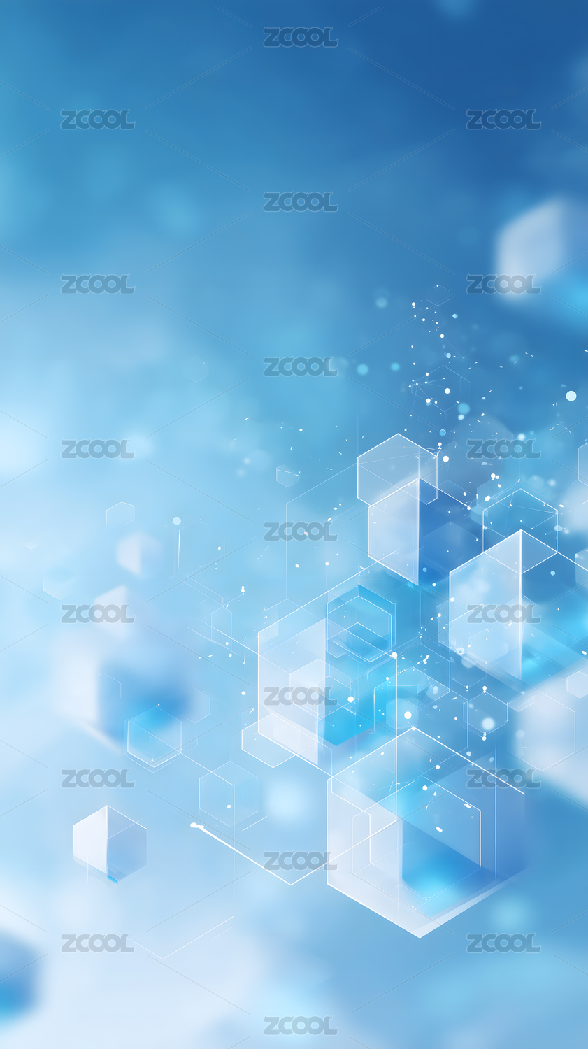 蓝色商务科技立方体粒子光效空间主视觉背景