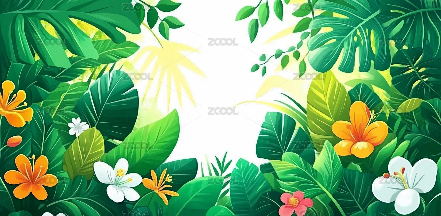热带雨林纸艺花卉背景图
