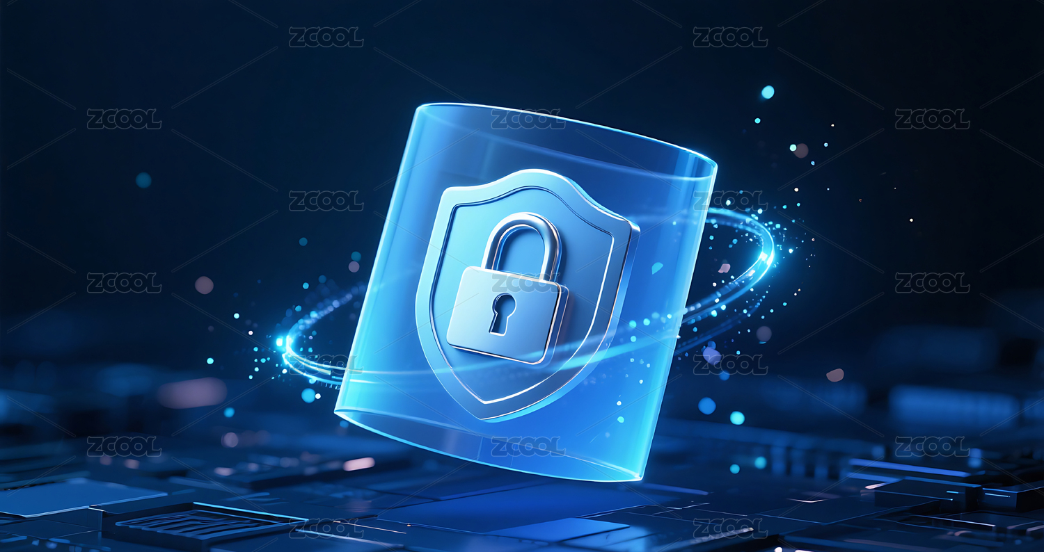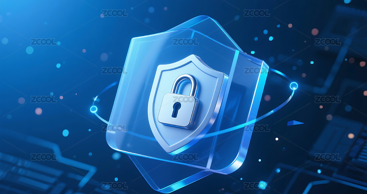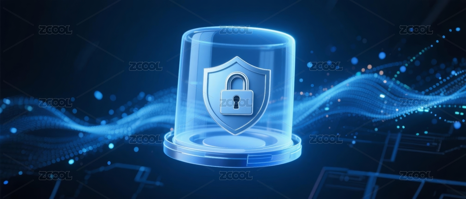 深蓝色科技悬浮半透明数据防护罩盾牌背景