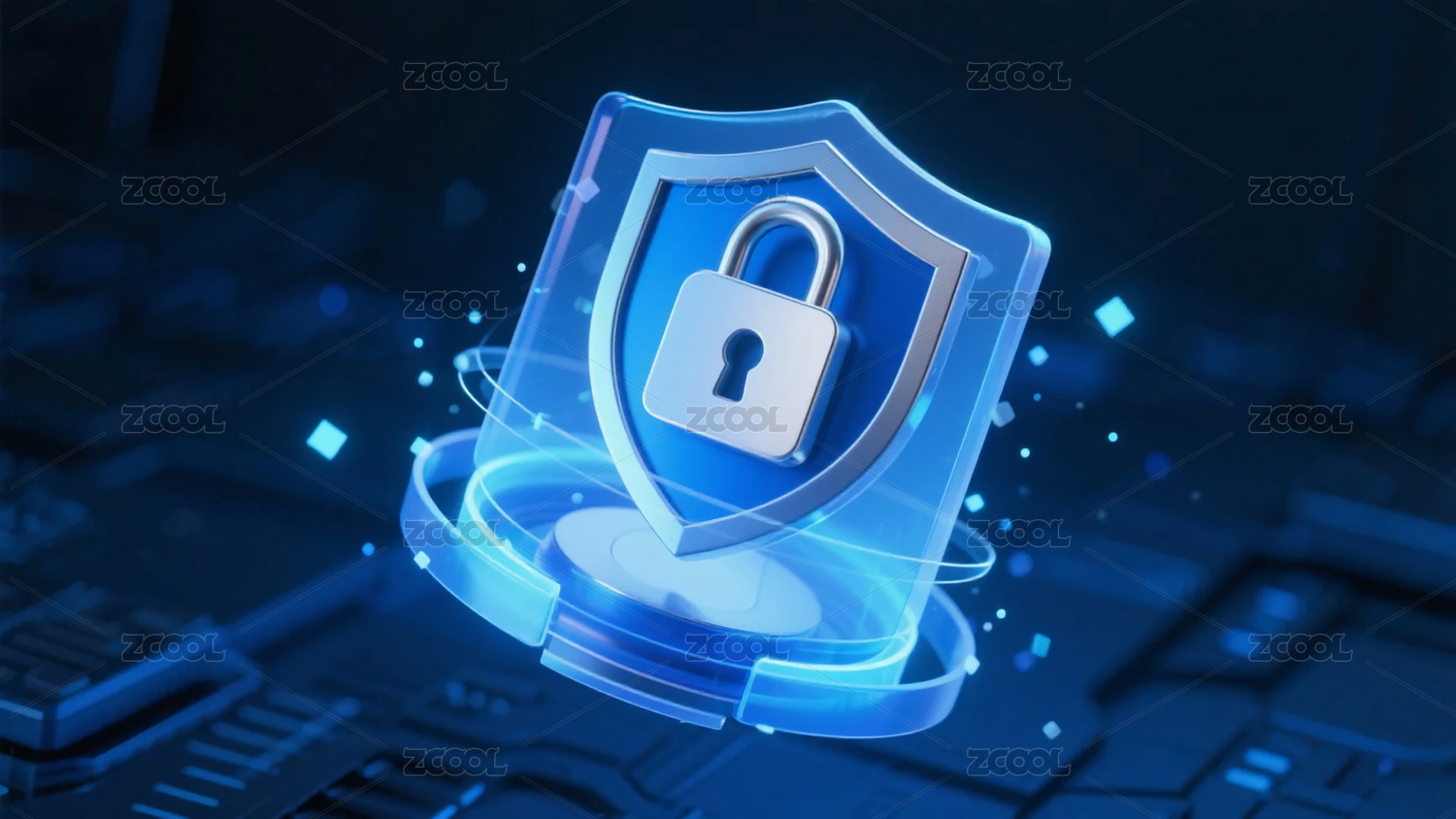 深蓝色科技悬浮半透明数据防护罩盾牌背景
