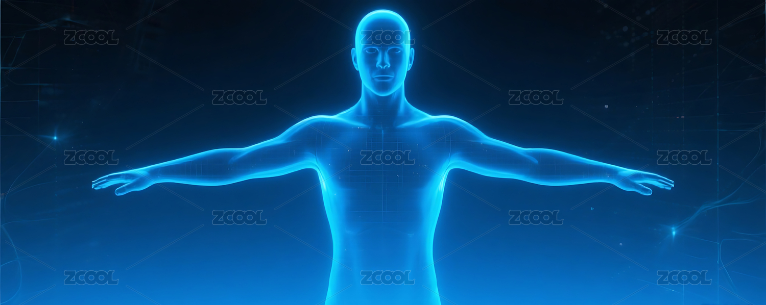 蓝色商务科技人型全息投影背景