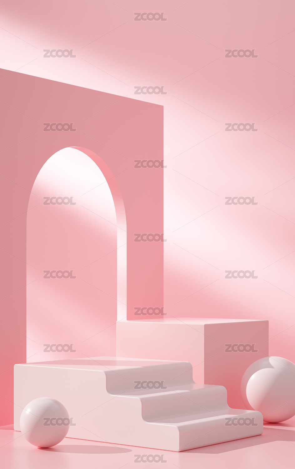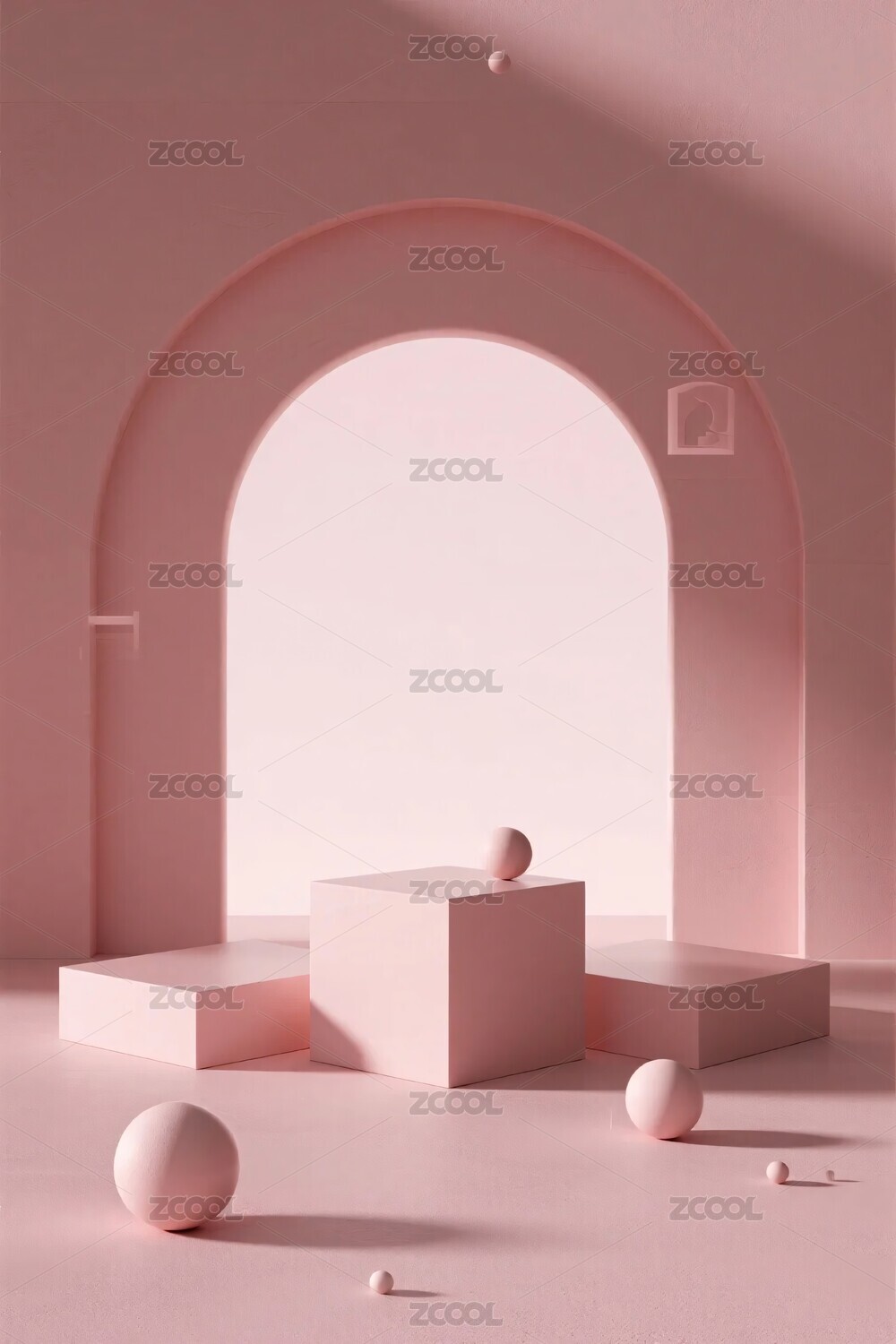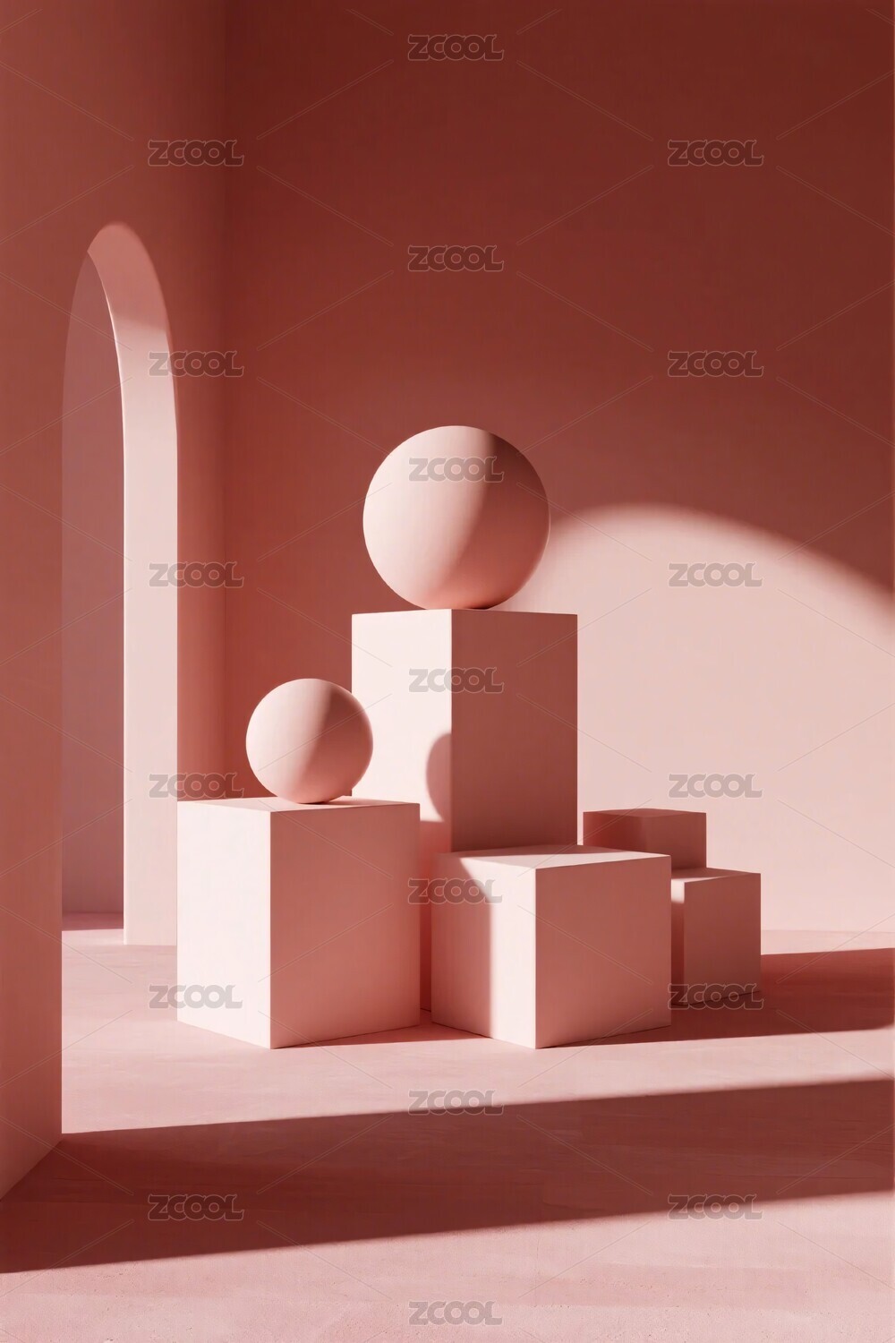 立方体,球体,拱门,几何,立体,粉色调,简约,现代,插画,矢量