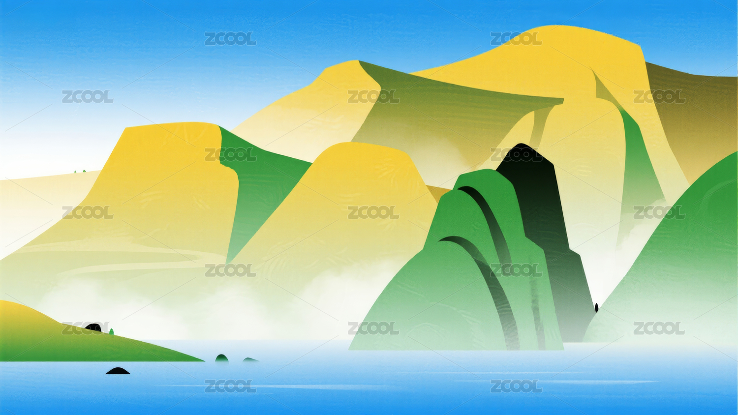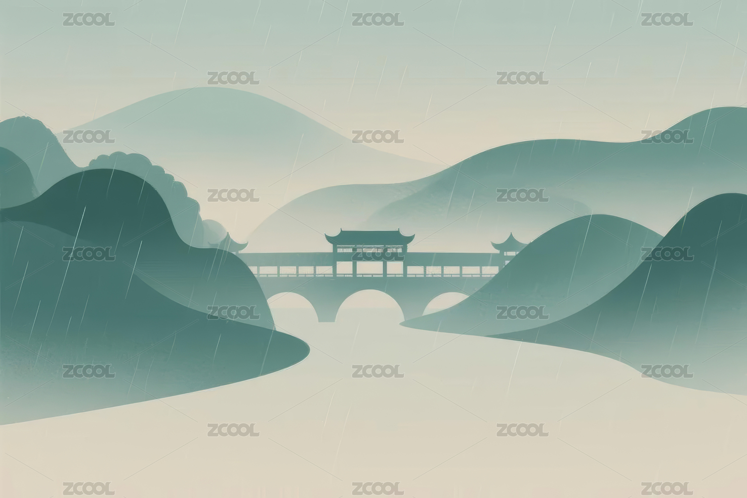 中式古风矢量山水插画