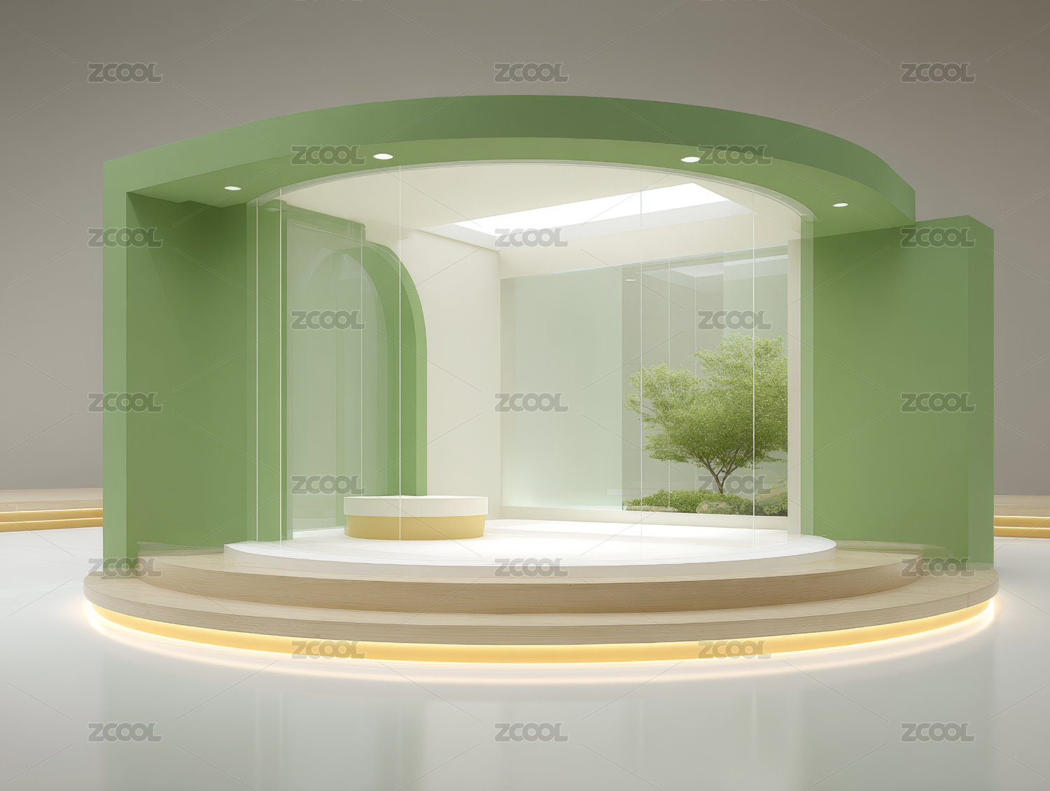 展示台,玻璃,植物,光影,简约,绿色,室内,设计,舞台