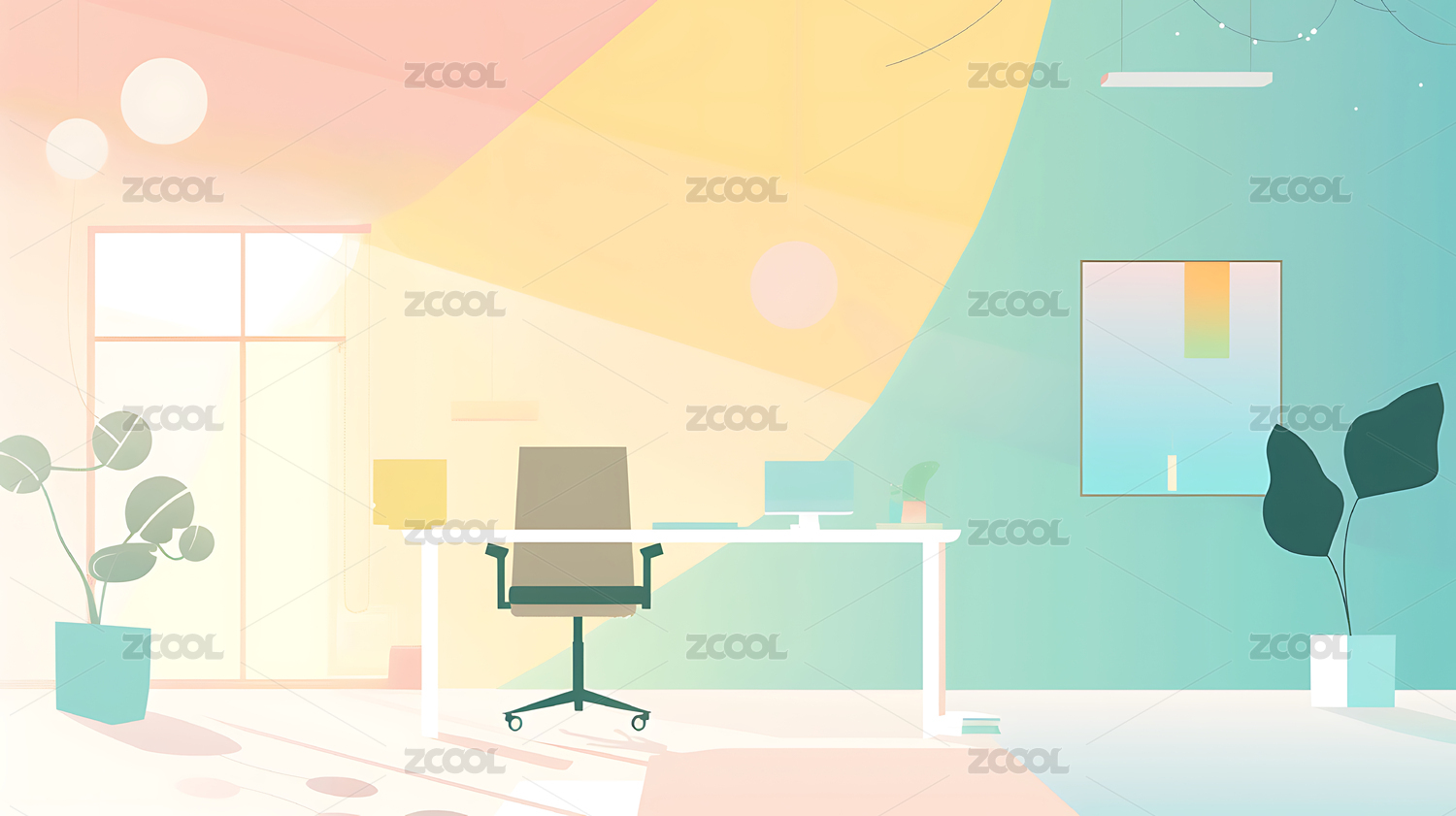 清新工作区插画