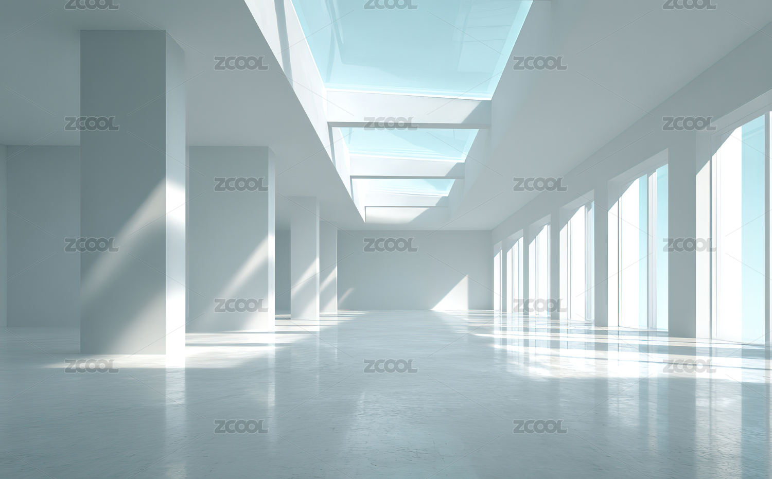 明亮宽敞的白色走廊