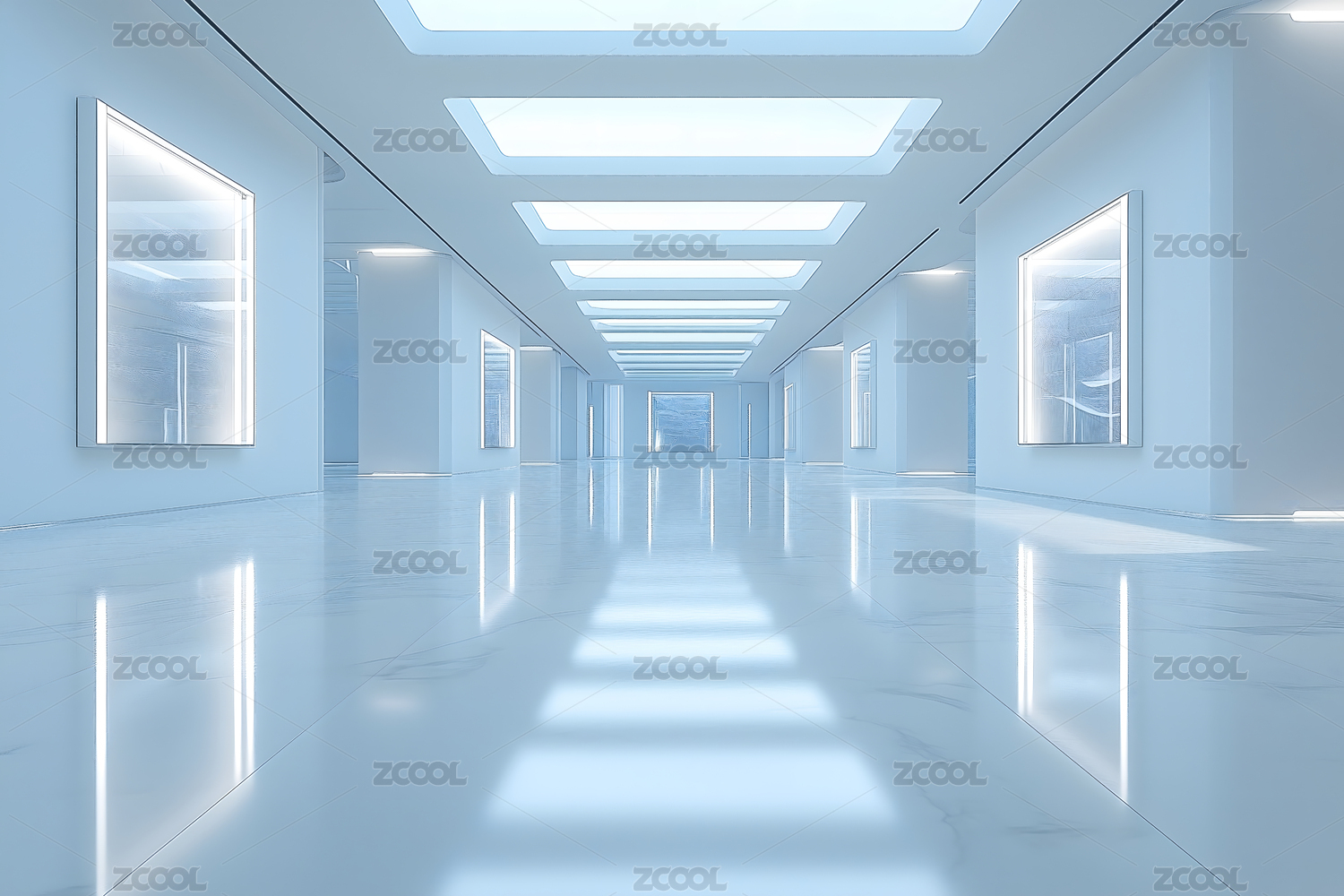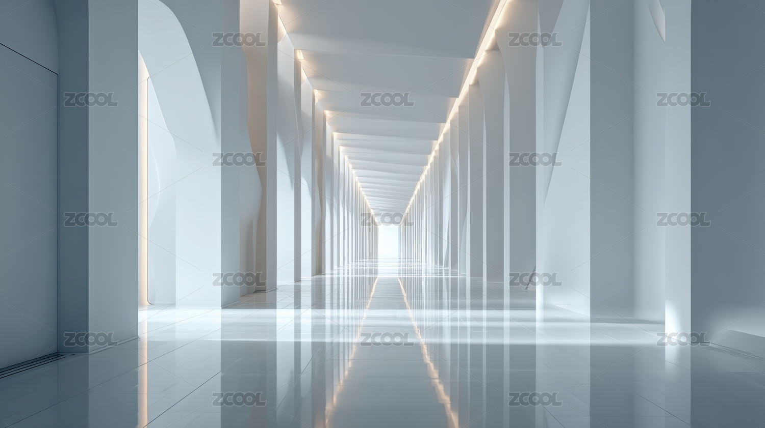 未来感十足的白色走廊