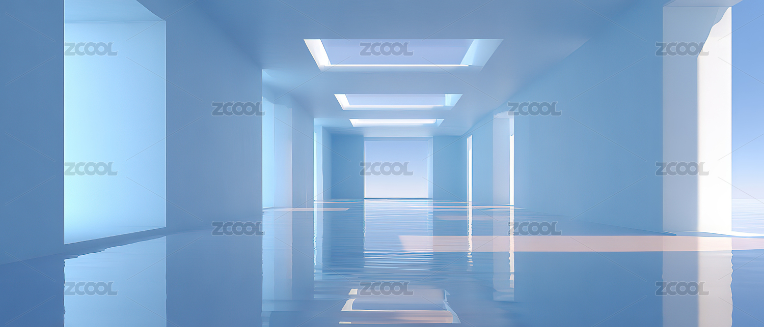 现代,建筑,室内,长廊,蓝色,窗户,光线,简洁,城市,景观