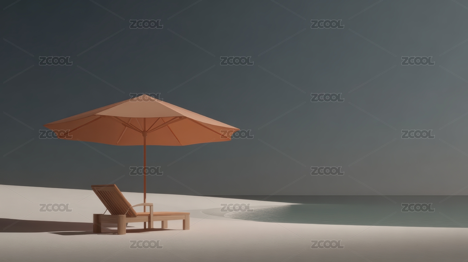 简约海滩遮阳伞与躺椅场景