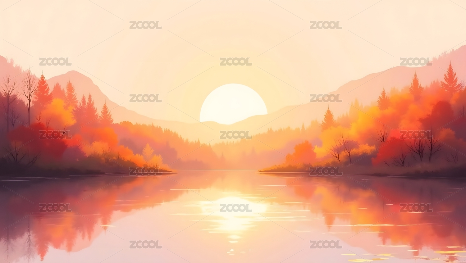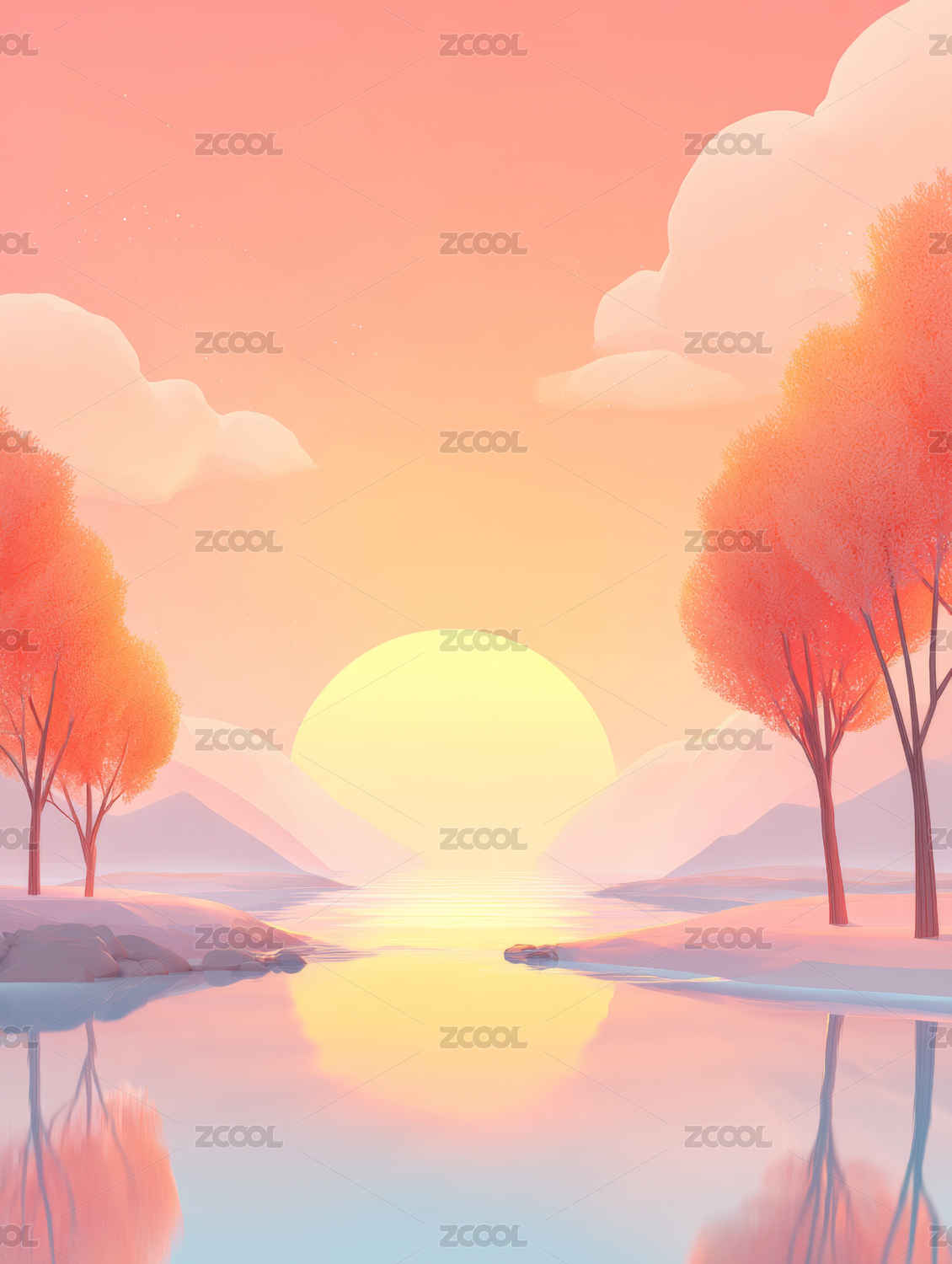 夕阳,湖泊,树木,倒影,天空,色彩,自然,宁静