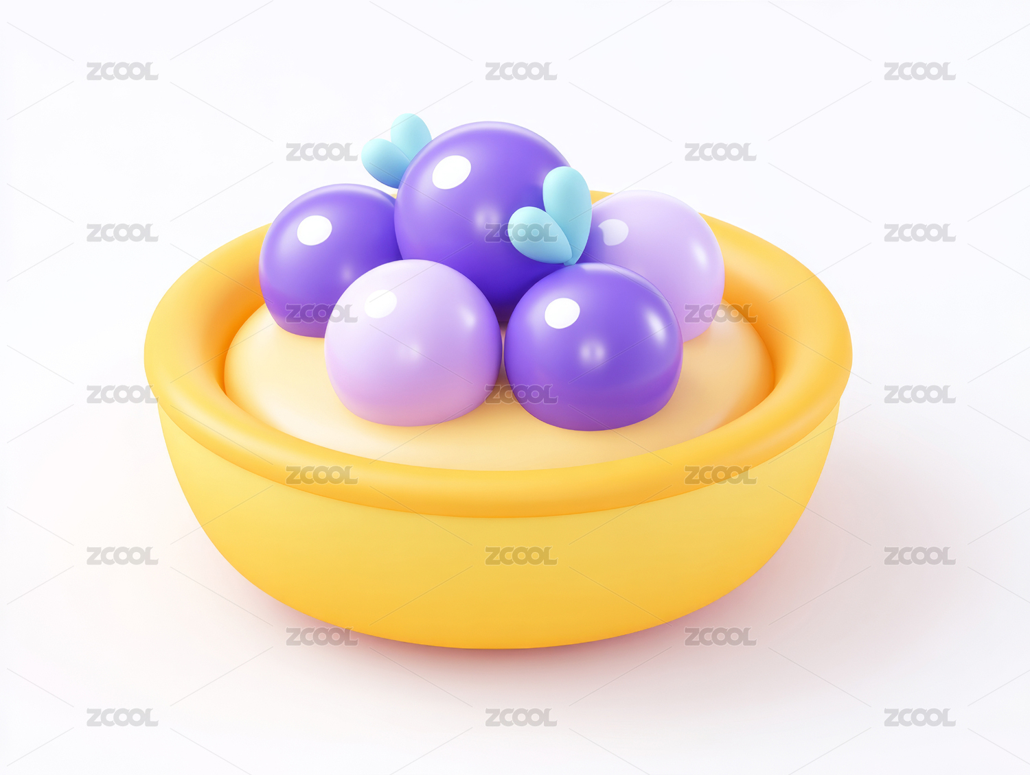 蔬菜,胡萝卜,紫色花,绿色叶,橙色碗,卡通,风格,3D,渲染,明亮