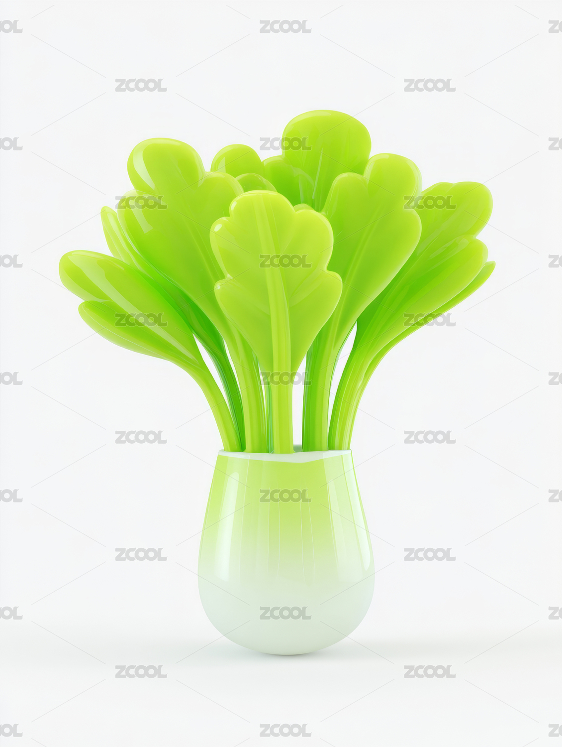 可爱绿色植物花盆开花3D园艺家居概念元素