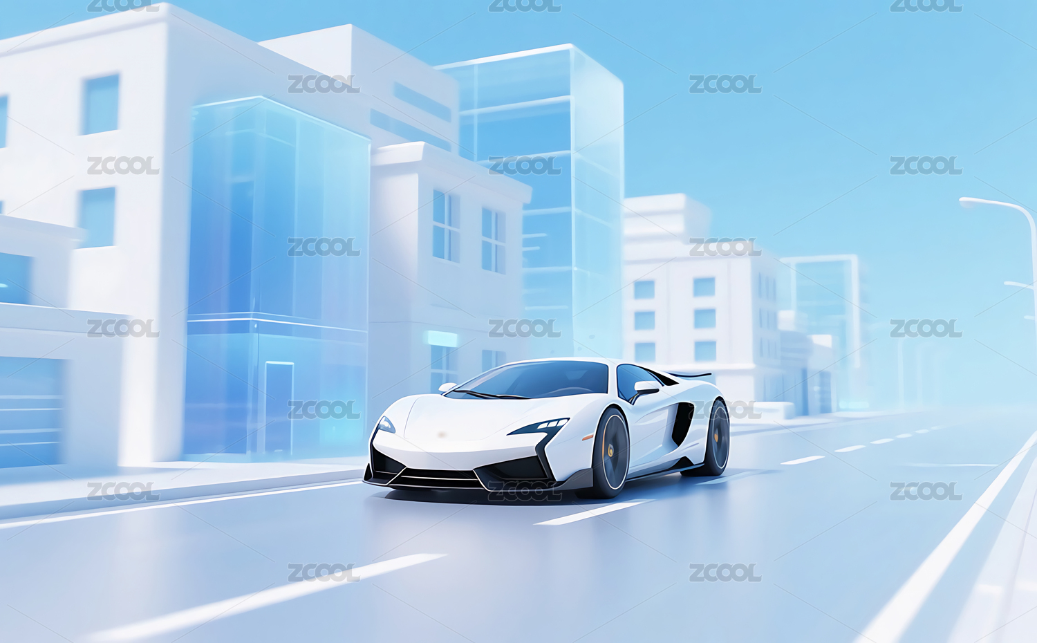 未来感跑车在城市中行驶