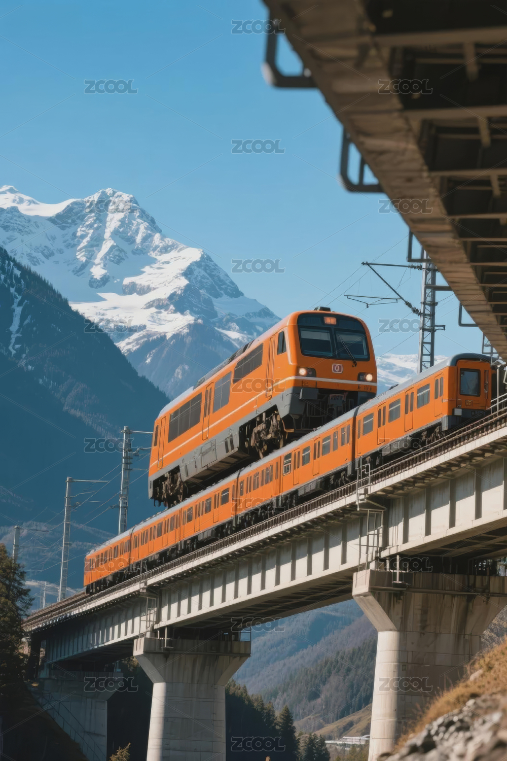 自然, 风景, 桥梁, 现代, 景观, 蓝天, 白云, 橙色, 旅行,雪山
