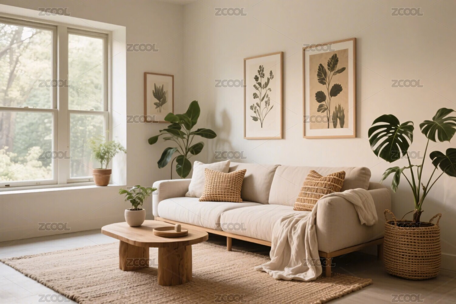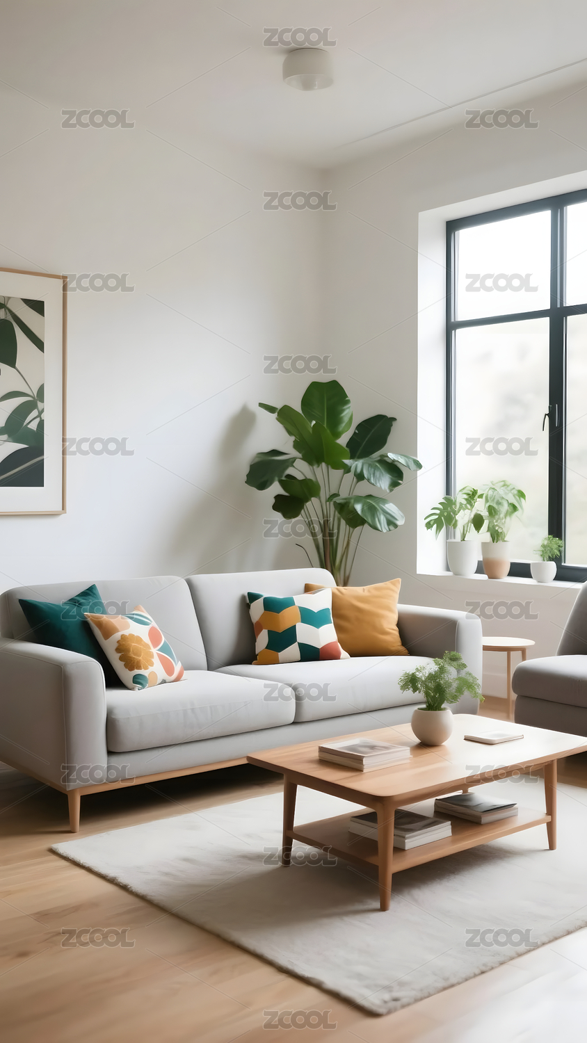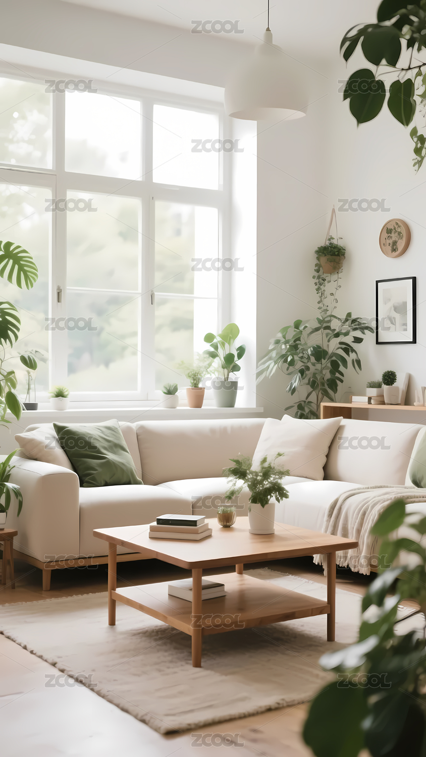 窗户, 设计, 风格, 装饰, 现代, 摆设, 白色, 沙发, 绿植, 茶几