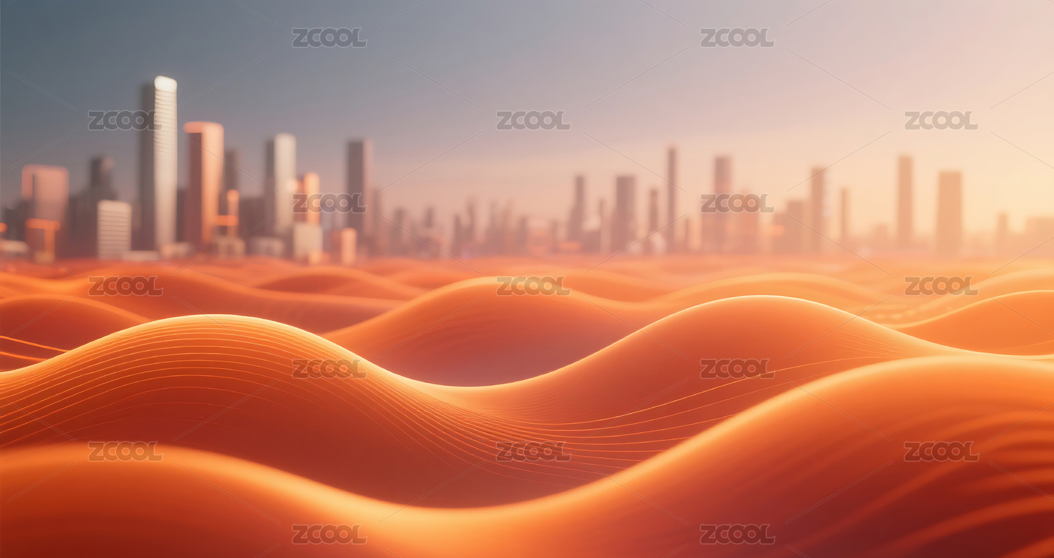橙色抽象流体流动城市建筑背景