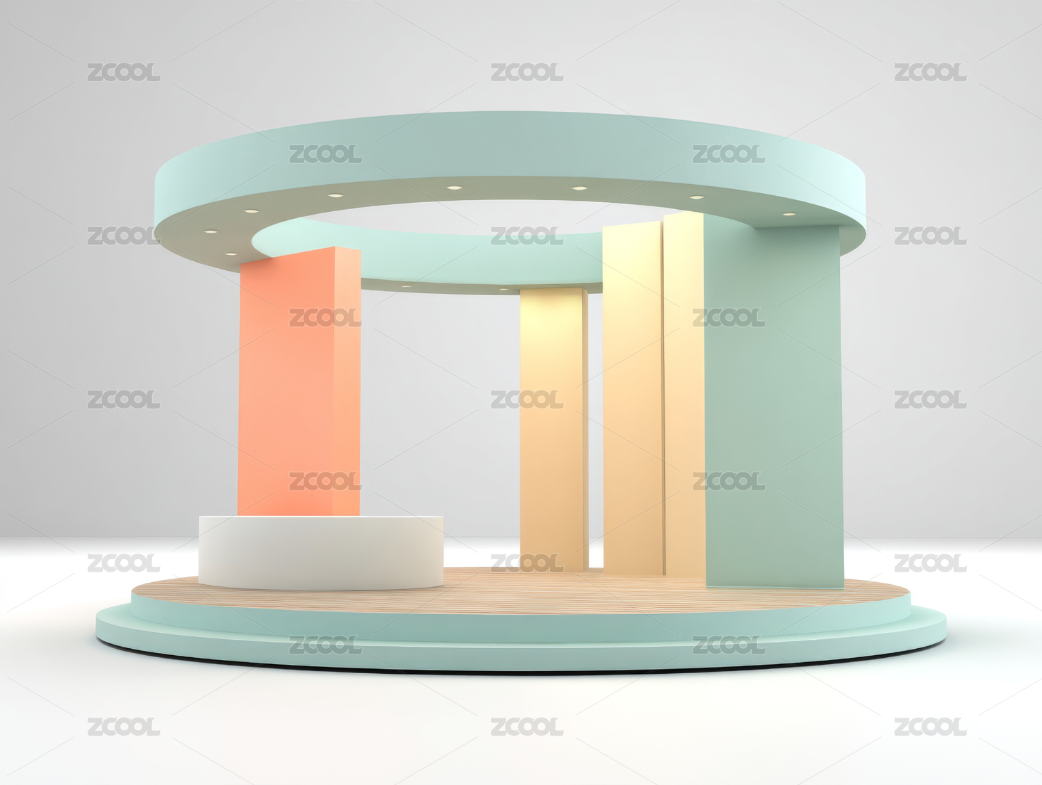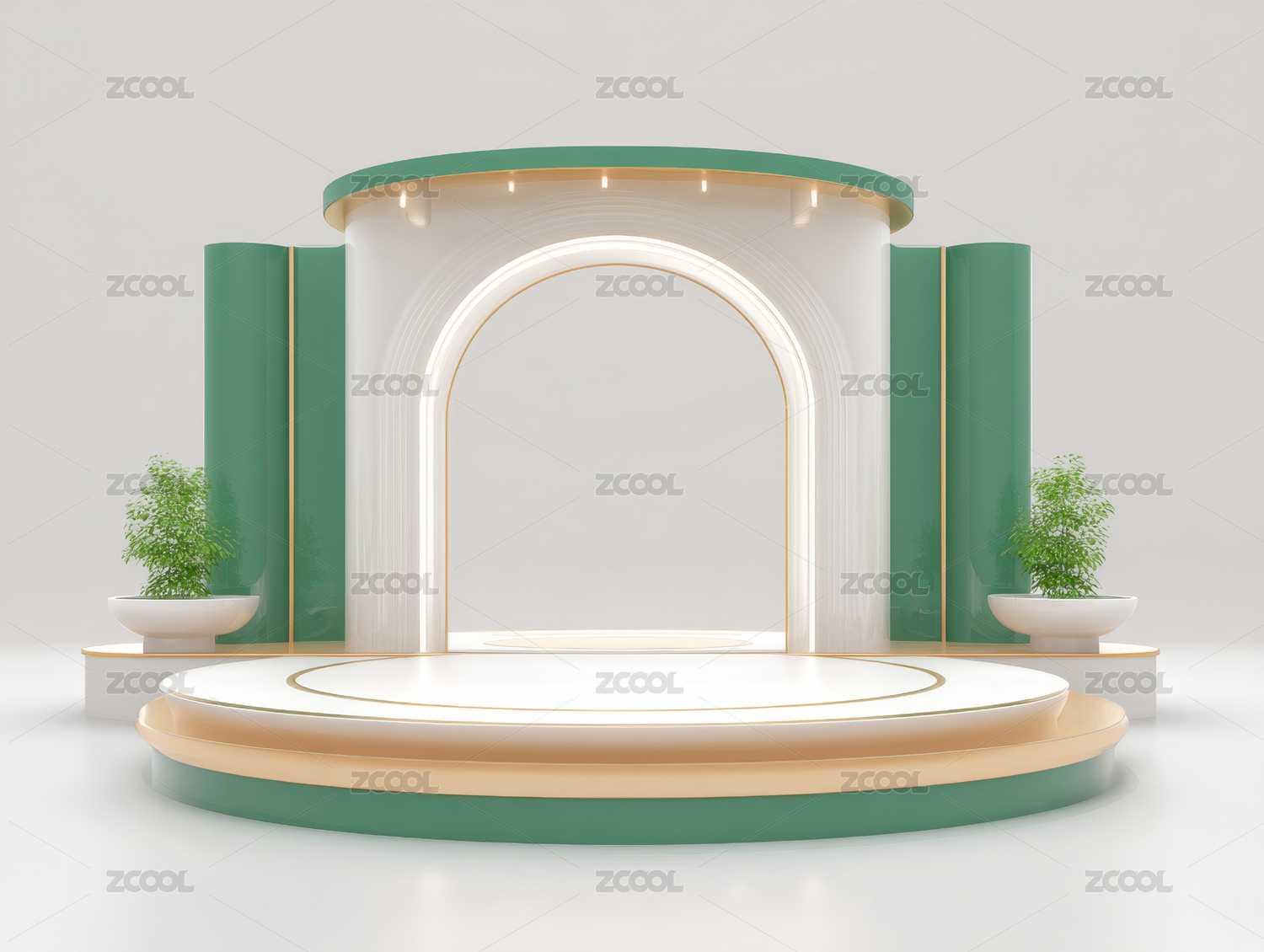 舞台,简约,现代,花卉,绿色,柱子,圆形,展示,设计,室内