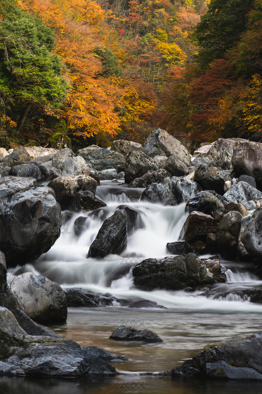 四川光雾山景区米仓山大小兰沟的红叶和溪水