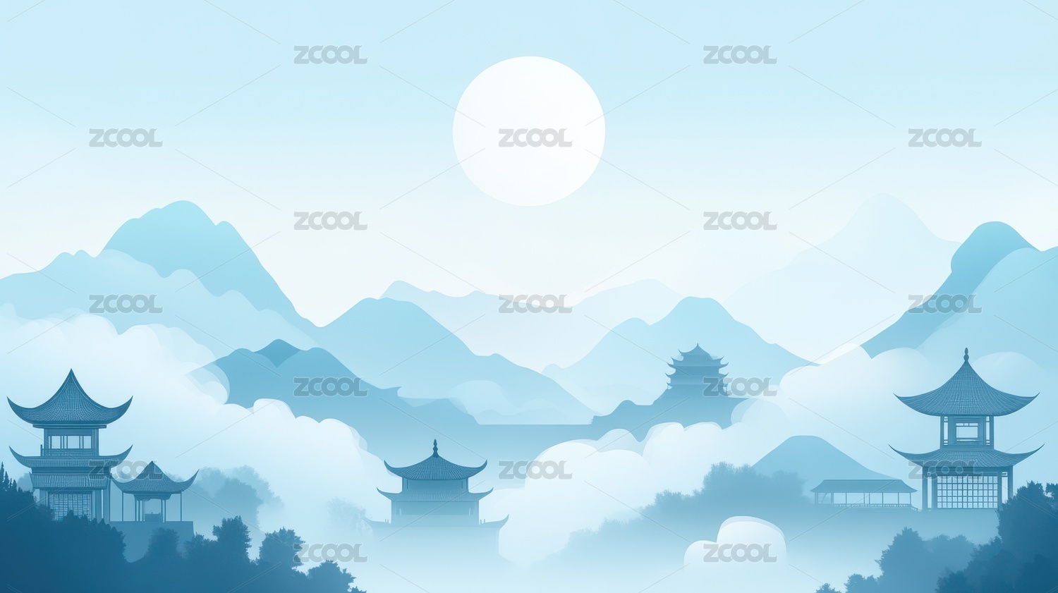 传统, 东方, 艺术, 设计, 自然, 宁静, 蓝色, 建筑, 朦胧, 现代