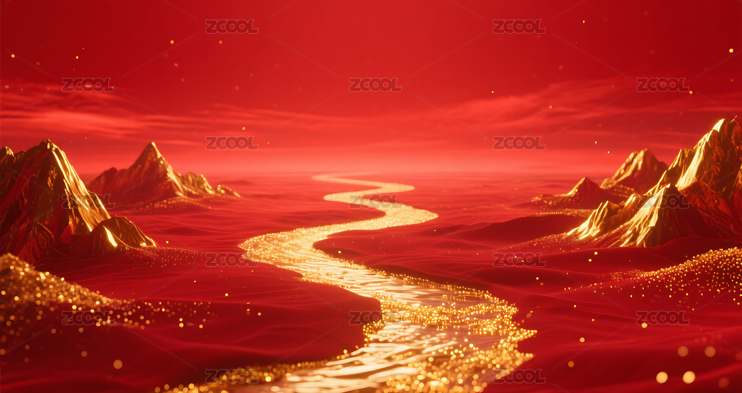 金色,山脉,河流,红色,背景,壁纸,商务,质感,景深,高级