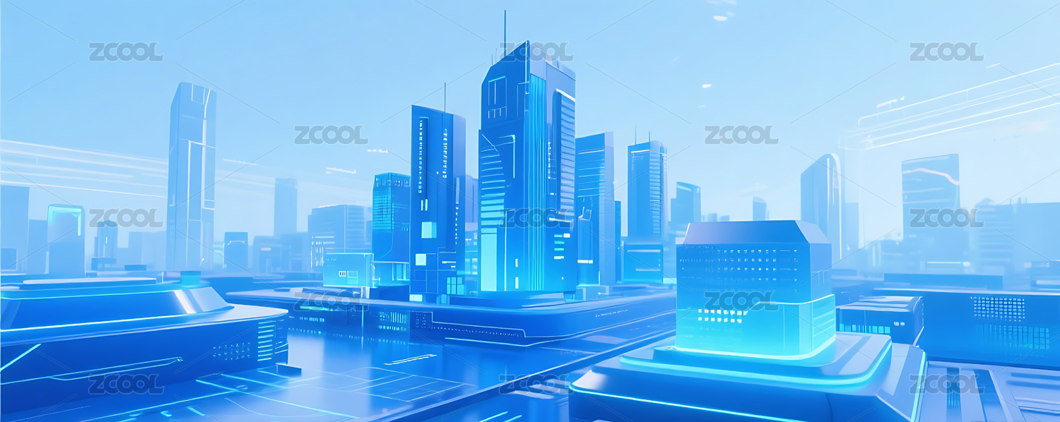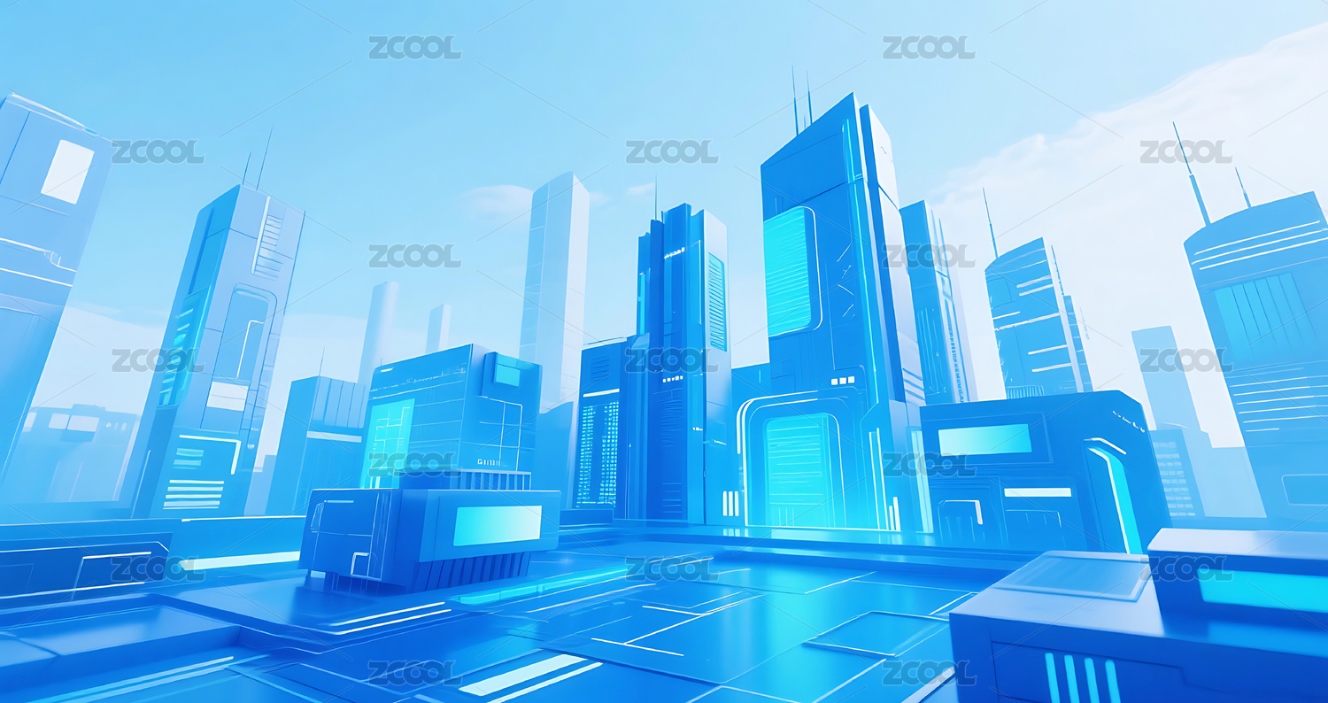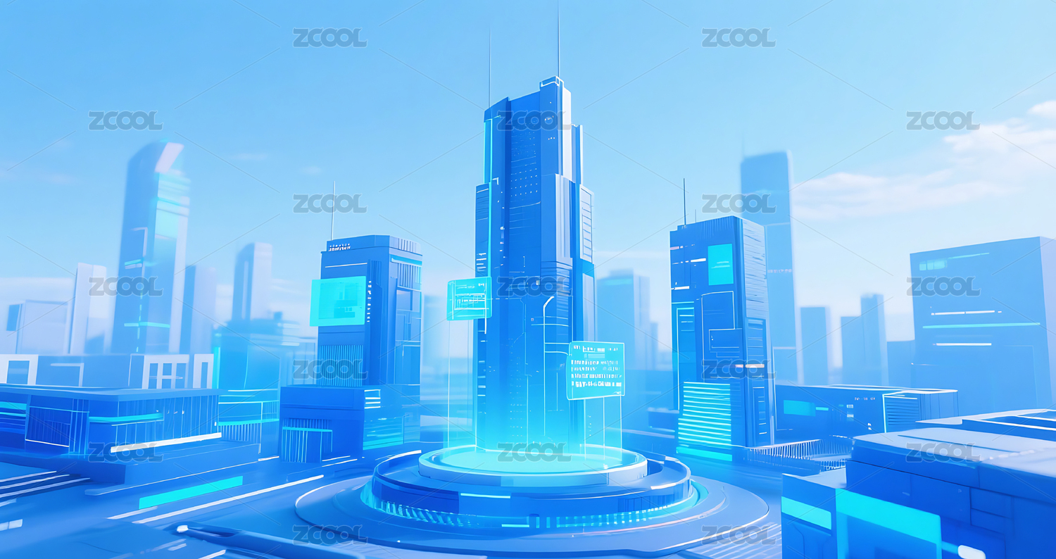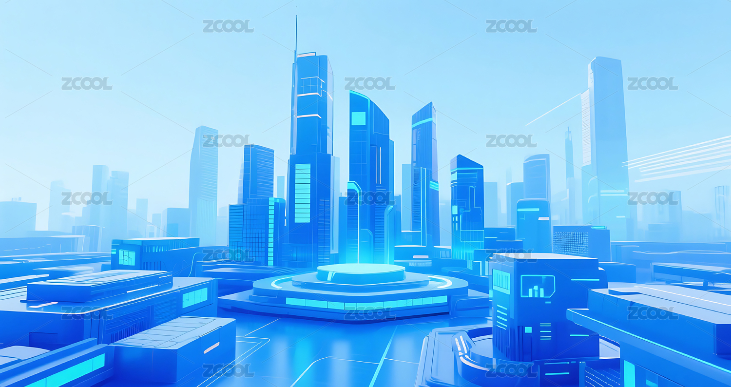 蓝调光影勾勒的科技天际线