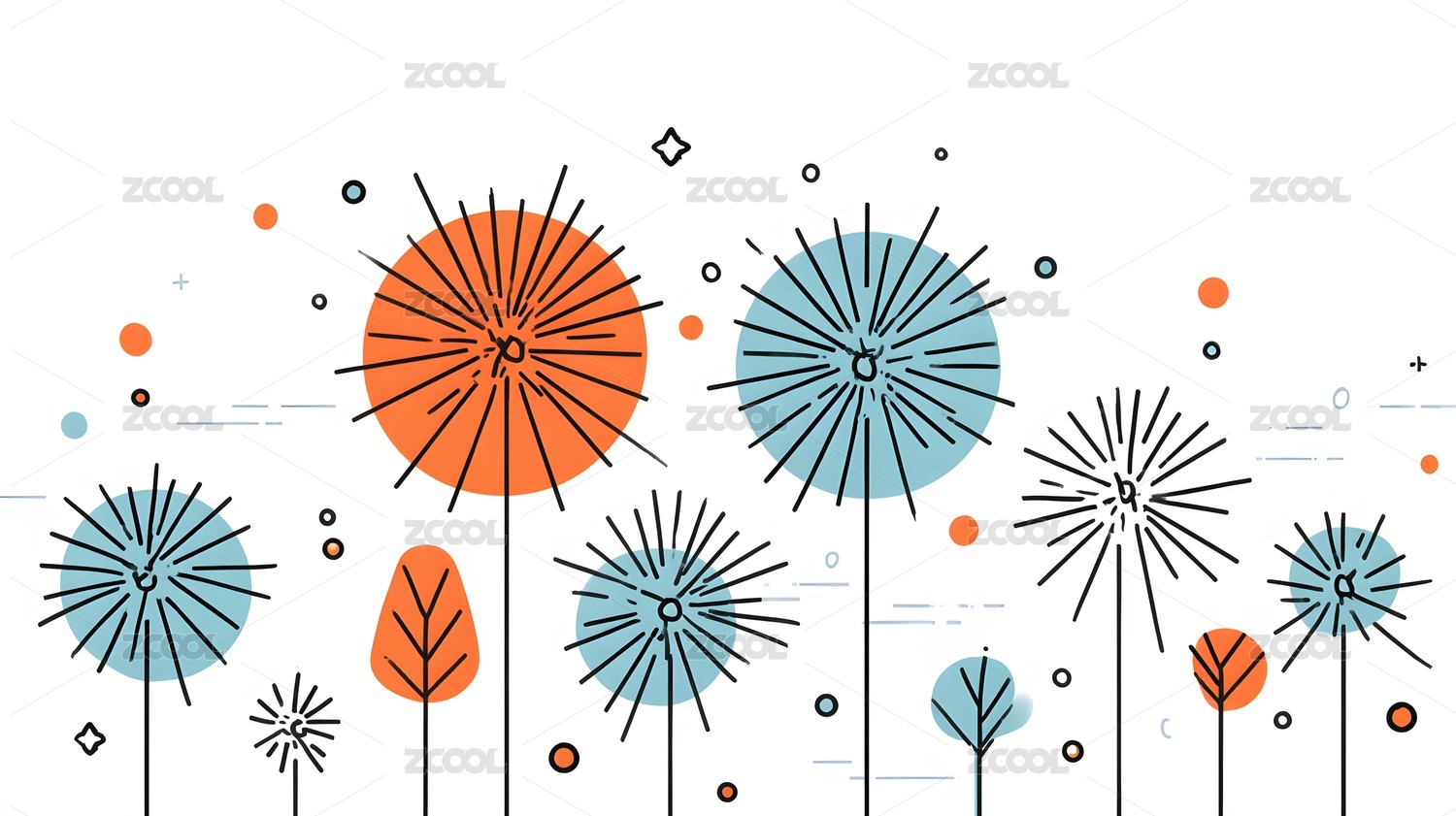 扁平几何风格花草插画