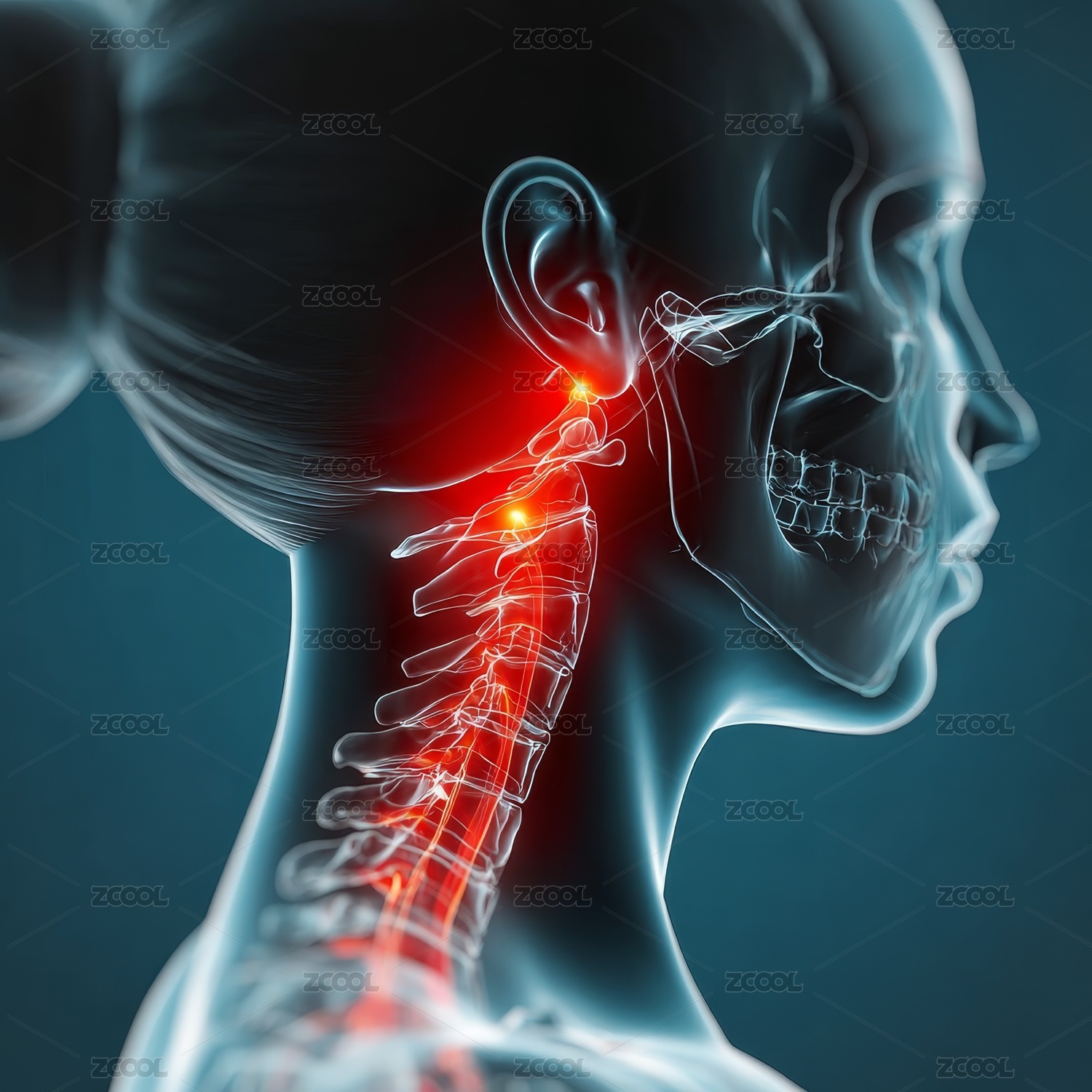 医疗风格高分辨率耳颈疼痛插图