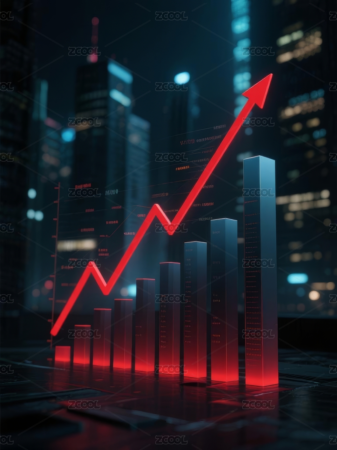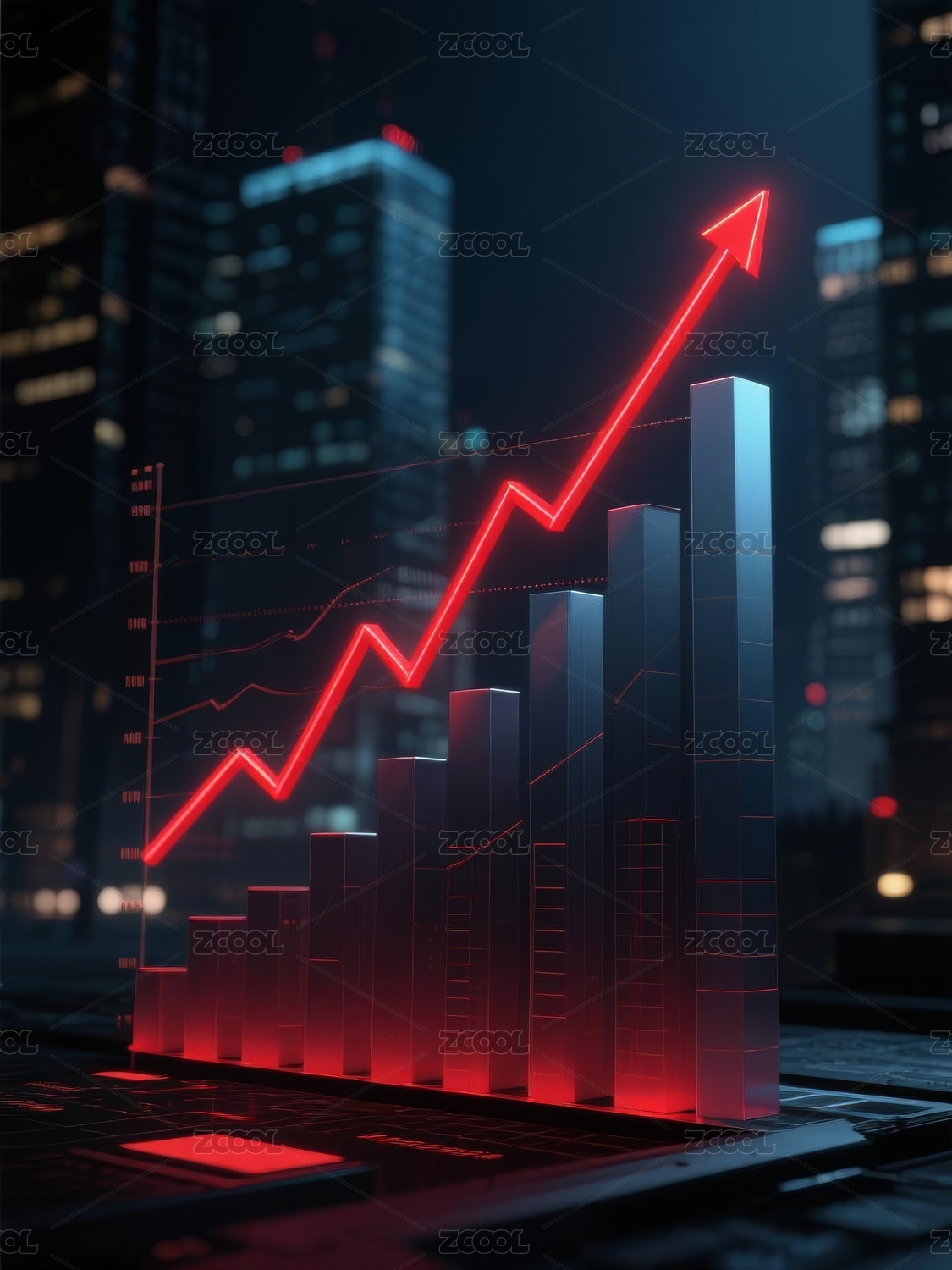 增长图表与城市夜景