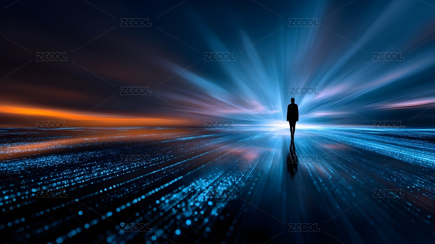 未来科技光路中孤独前行的人影