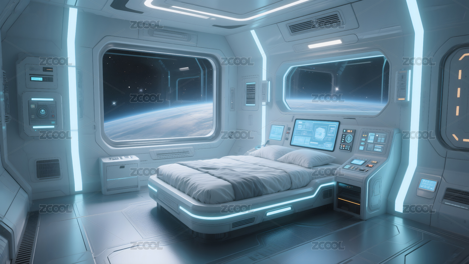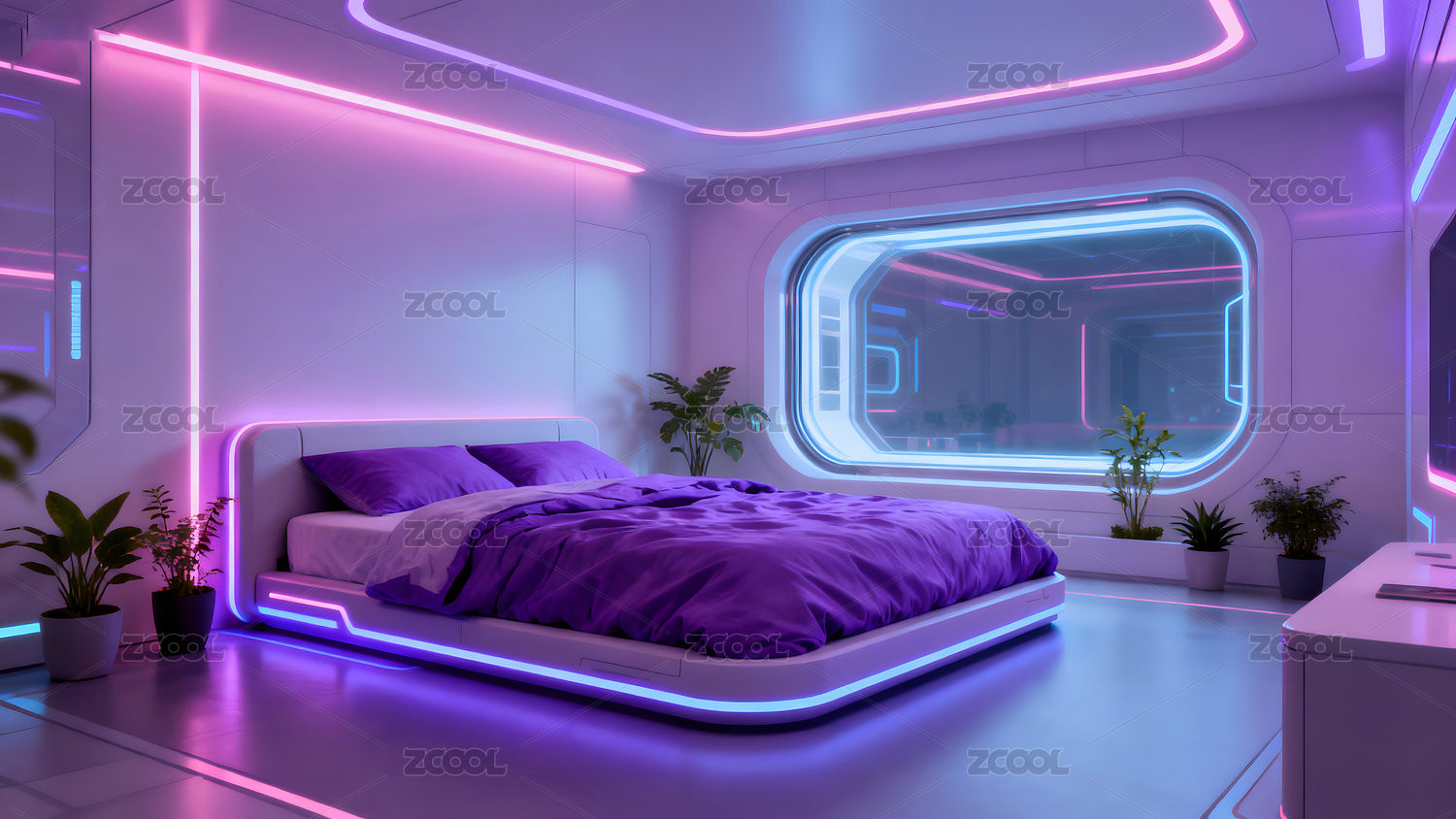 室内,科技,装饰,现代,设计,环境,未来,卧室,床铺,灯光