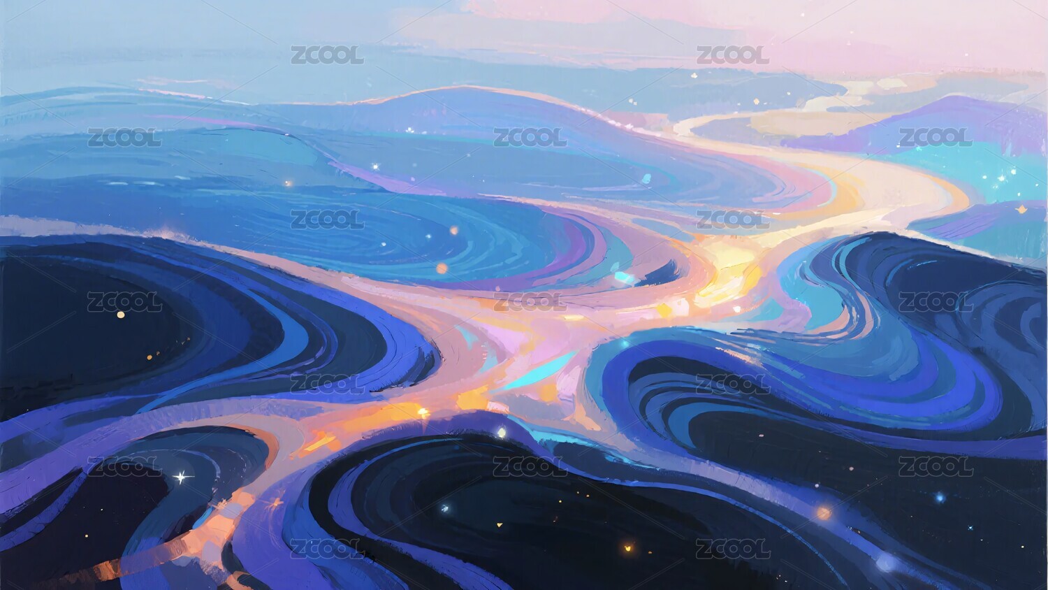 蓝色漩涡与星光的梦幻交织