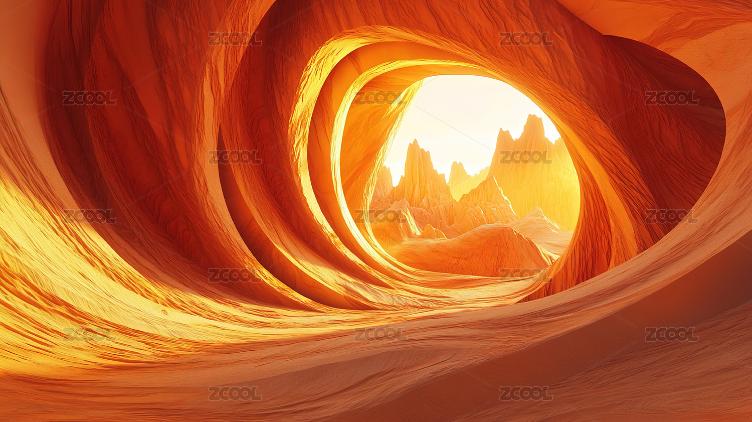 峡谷洞穴中的绚丽日落