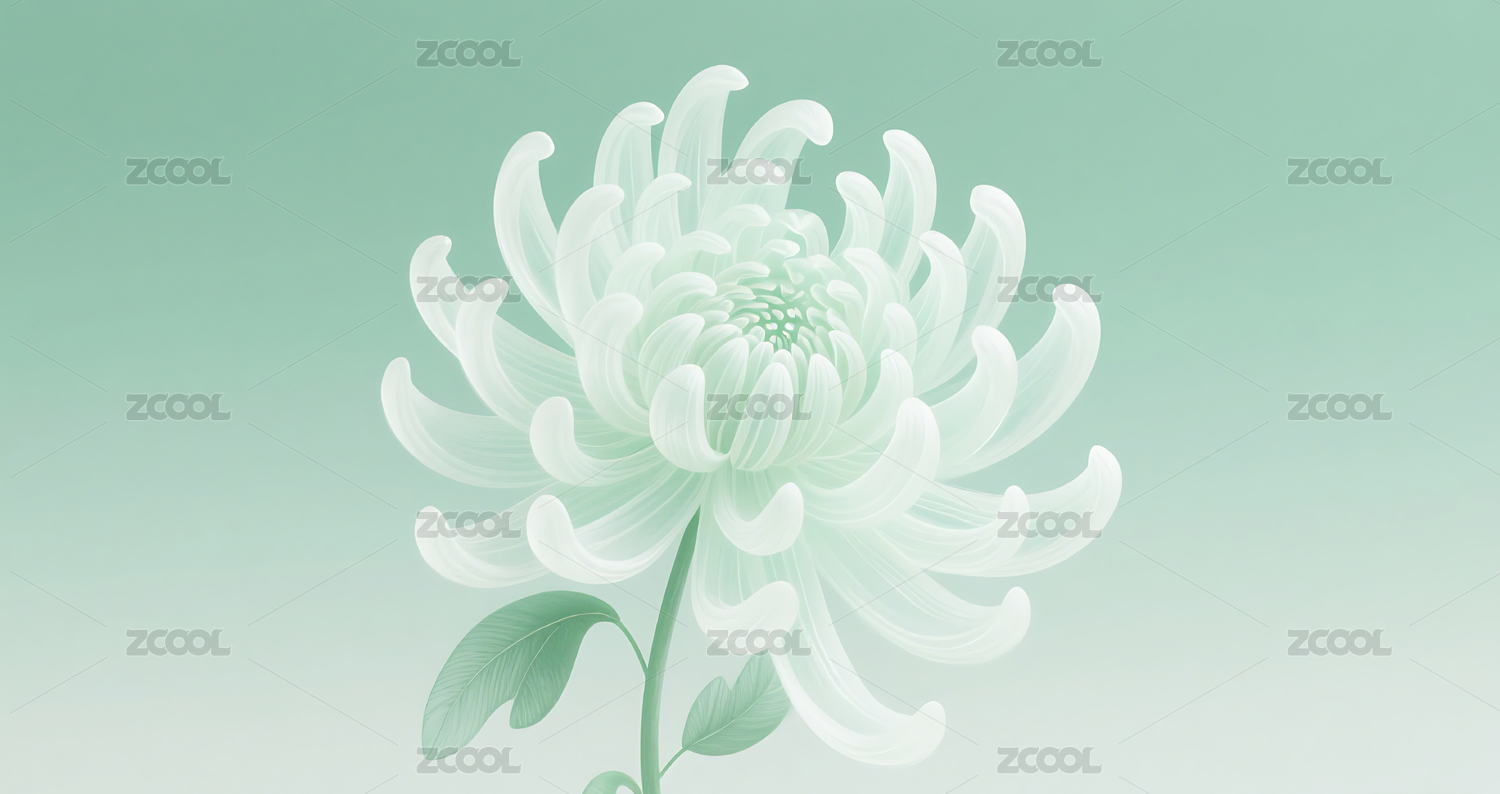 绢笔画淡绿渐变菊花背景